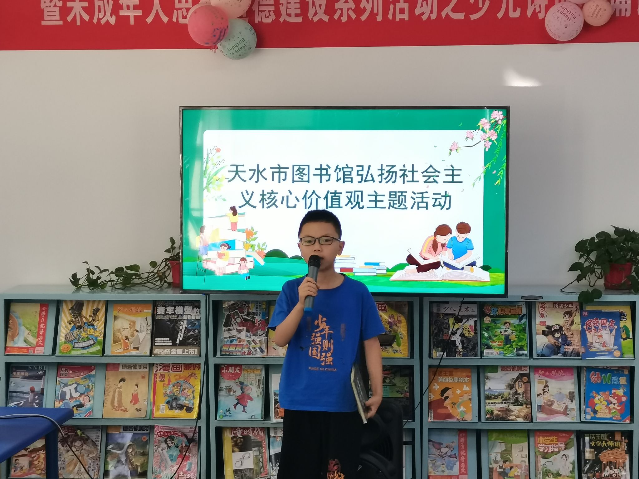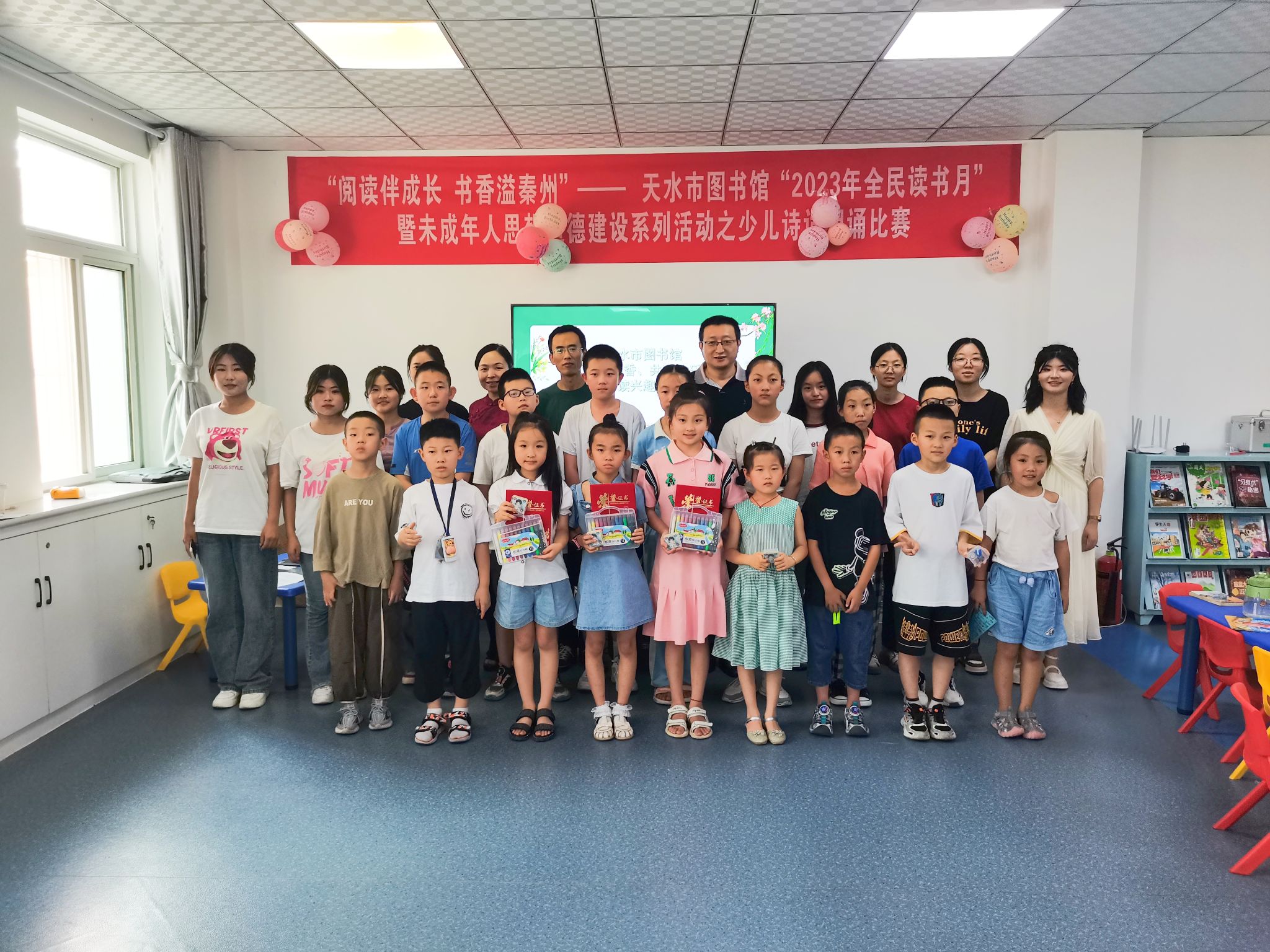 阅读是一种创造性的学习活动,不仅可以增长我们的知识,还能拓宽视野、陶冶心灵。一本好书能给人以启迪,让我们获得无穷的智慧。养成良好的阅读习惯,一生都会受益无穷。为引导少年儿童爱读书、读好书、善读书,促进养成良好阅读习惯,与好书为伴,享受阅读乐趣,7月29日下午,天水市图书馆流通部、采编部、信息技术部、辅导部四部室联合举办了“同沐书香 共享快乐”少年儿童阅读兴趣培养活动。
