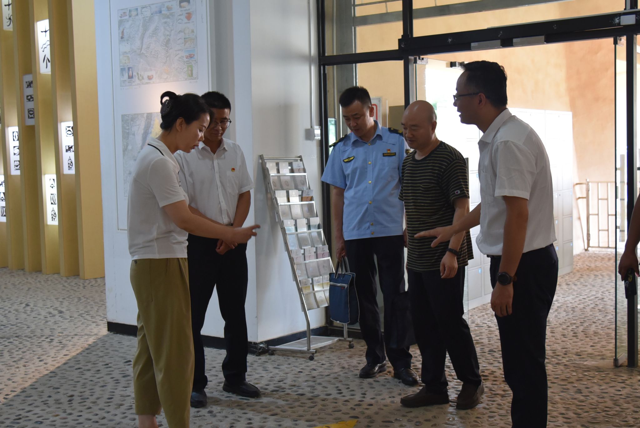 第一督查组紧扣督查内容,对甘肃大地湾文保所应对汛期、暑期文化旅游服务接待准备、安全标识、电气线路、日常巡检、疏散通道、安全出口畅通、灭火器材、展厅各项应急设备等情况开展全面检查,通过查阅资料、实地查看、听取汇报、现场提问等方式进行严格客观的评价,并且督查指导大地湾博物馆开展安全生产、服务质量、接待能力等方面自查自纠,从源头上堵住漏洞、消除盲区,为我馆进一步工作指明了方向。