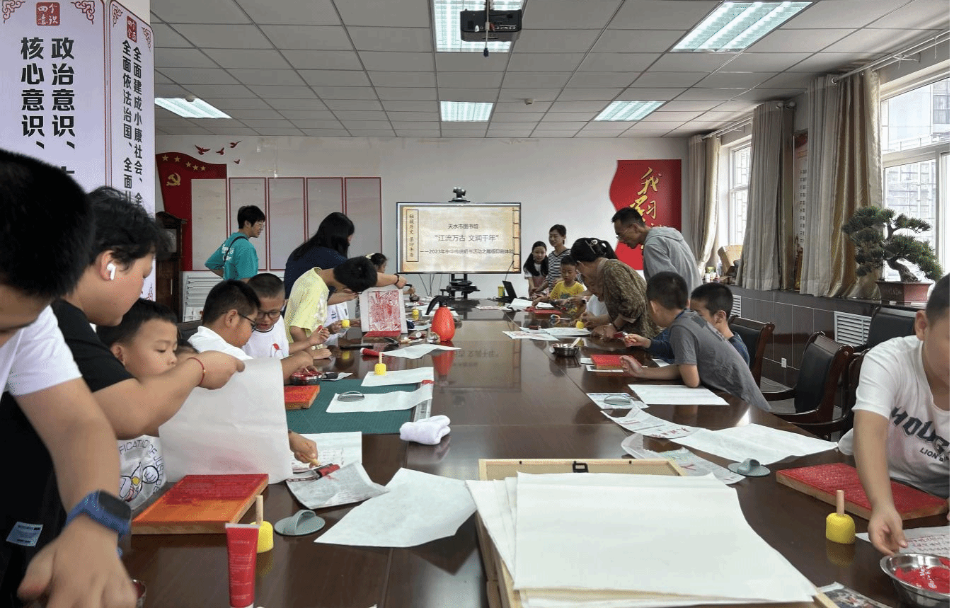 雕版印刷术是一项民族特征鲜明的非物质文化遗产,被称为印刷术中的活化石。它兴于唐、盛于宋,源远流长。8月18日上午,一场雕版印刷体验活动在天水市图书馆会议室如火如荼的进行,吸引了20余位青少年读者参加。