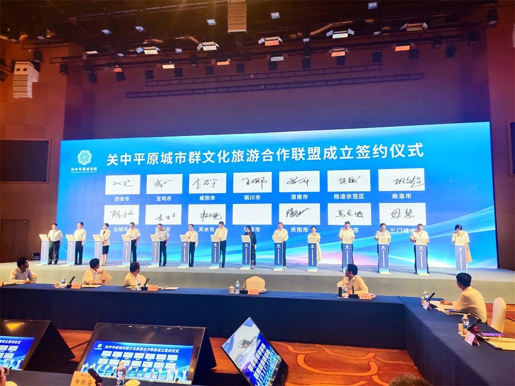 8月18日,关中平原城市群市长联席会议在西安市浐灞锦江国际酒店举办。会上,市长王国先代表天水发表了重要讲话。市文化和旅游局局长牛新虎与关中平原各城市文旅部门负责人共同签署了关中平原城市群文化旅游合作联盟框架协议,标志着关中平原城市群文化旅游合作联盟正式成立。此次联盟成立和会议的召开将进一步深化关中平原城市群城市文化旅游合作,共同推动文化传承创新,共同塑造关中文化旅游品牌形象,全面提升关中平原城市群整体竞争力、影响力、吸引力。会议现场,市文旅局向关中平原各城市政府领导、文旅企事业单位等与会嘉宾发放“千山万水 就爱天水”旅游线路宣传册页500余份,并通过展板推介充分展示天水独特的旅游资源、历史文化、农特产品。