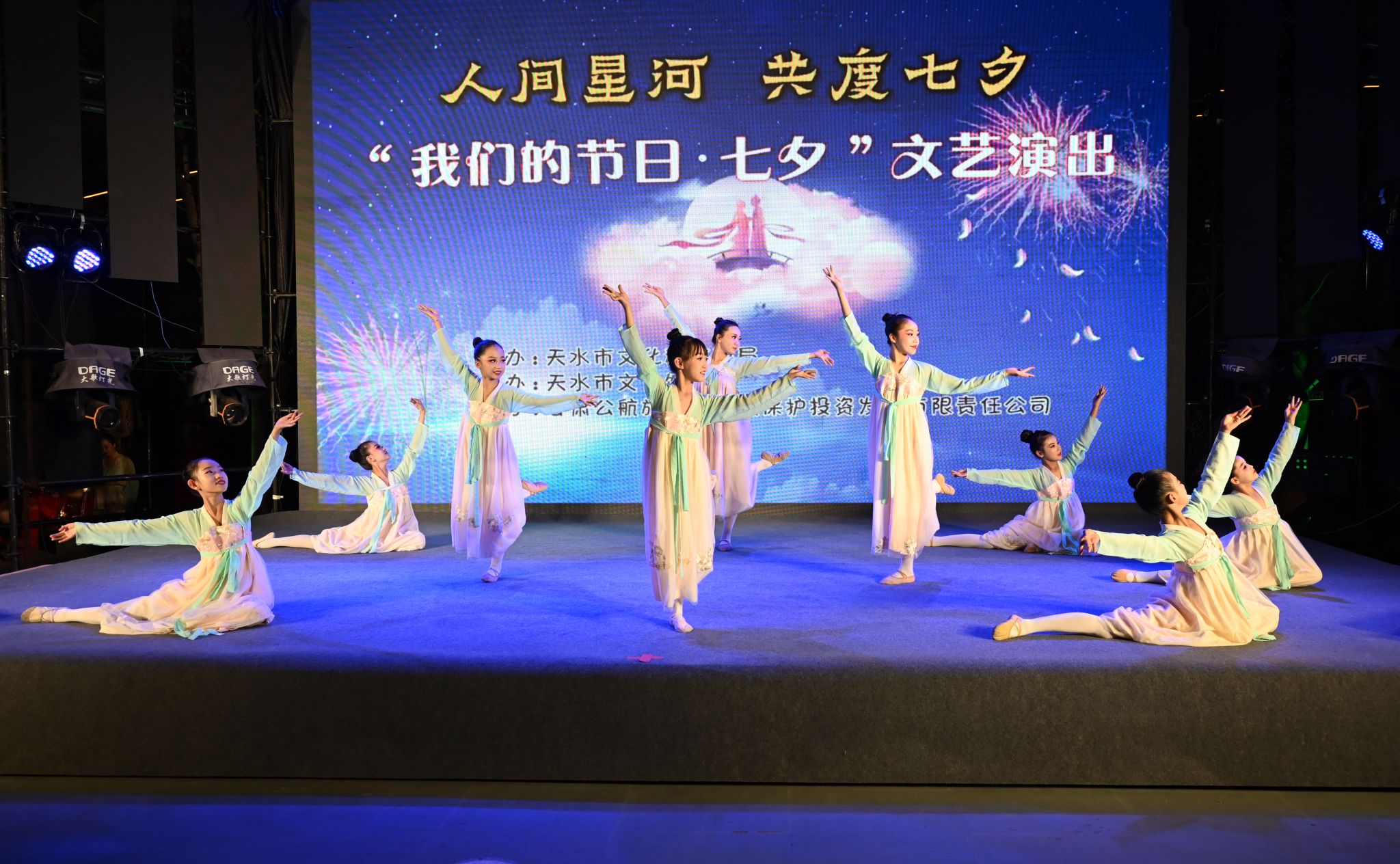 8月21日,在七夕节来临之际,由天水市文化和旅游局主办、天水市文化馆承办、甘肃公航旅天水名城保护投资发展有限责任公司协办的“人间星河•共度七夕”—“我们的节日·七夕”文艺演出活动在天水古城举办。