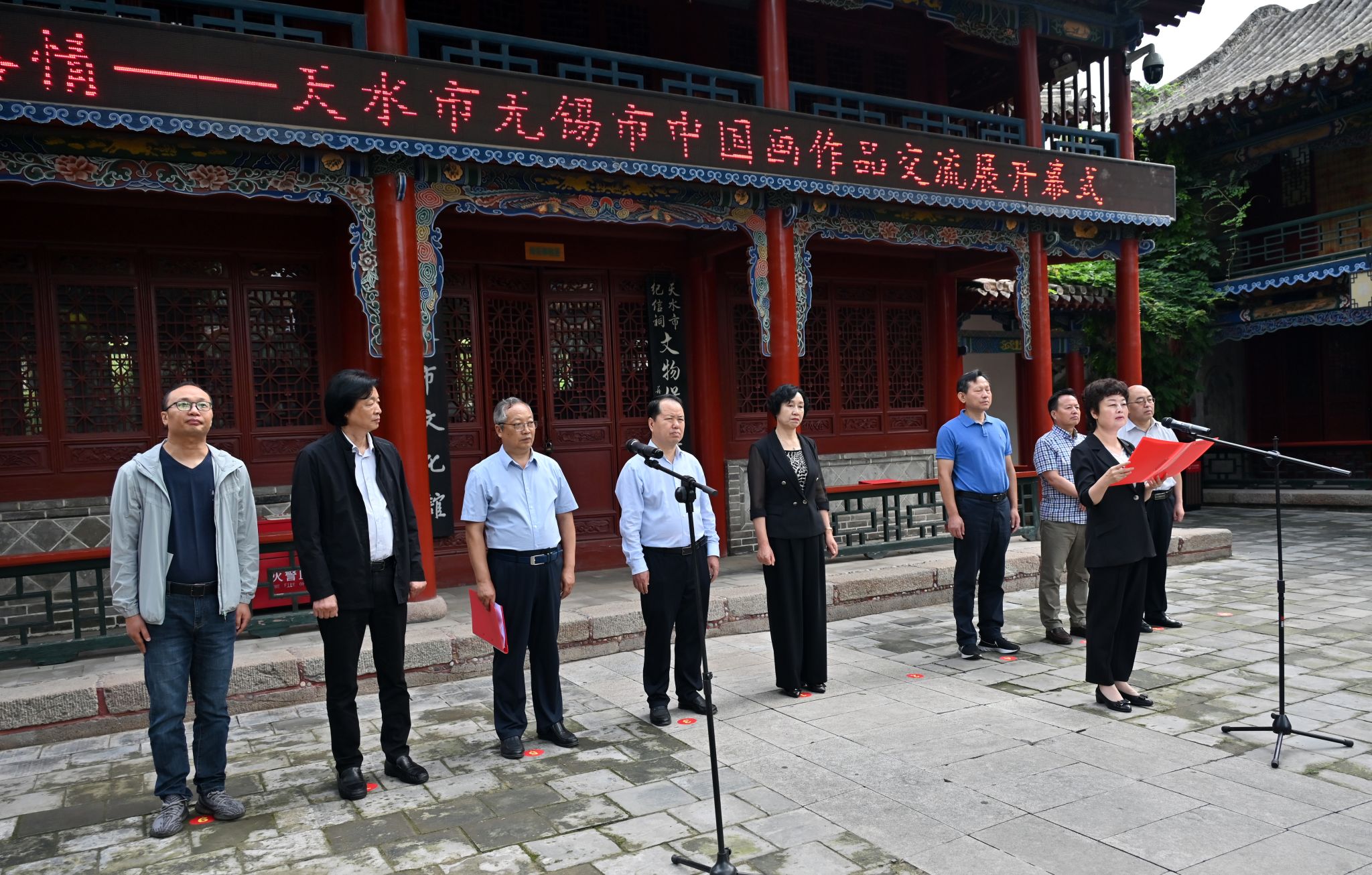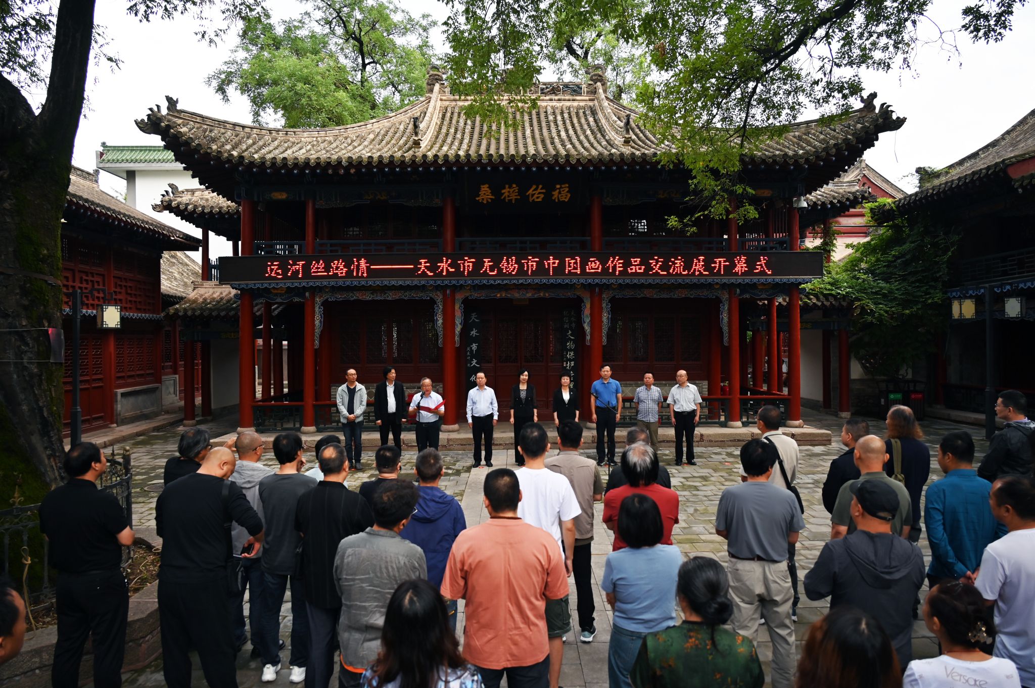 开展仪式由省书协副主席、市文联党组书记、主席杨清汀主持,无锡市文联党组书记、主席杨健致辞,甘肃省美协副主席、天水市文联兼职副主席、天水市美协主席贾利珠介绍展览情况,天水市政府副市长汪小娟讲话并宣布开展。