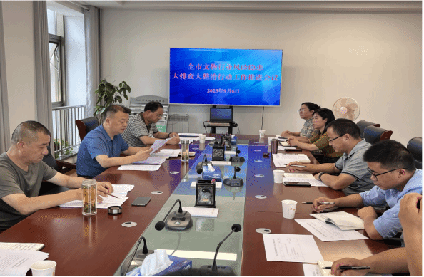 会议强调,一要提高站位。深入学习贯彻习近平总书记关于文物保护和文物安全的重要论述和批示指示精神,全面落实国家、省市有关会议文件要求,强化文物安全意识,树牢文物安全底线意识和红线思维,压实安全责任,强化责任落实,对违法违规行为,依法依规追究相关责任。二要完善措施。不断完善防盗、防火、防自然灾害等安全防护设施和措施,制定安全应急预案并定期演练,切实增强应急处置能力,严格落实值班值守和领导带班制度,定期开展文物安全警示教育。三要全面排查。坚持问题导向,对大排查大整治行动行动再安排再部署,做到拉网式全覆盖排查整治,坚决消除文物行业风险隐患。要加大检查巡查力度,重点检查文物古建筑、石窟寺、博物馆等违规用火用电、安防消防设施设备失效、消防水源不足、电气线路设备故障、易燃可燃物存放、燃香烧纸和应急管理能力薄弱等问题,同时要加强文物保护工程项目工地安全管理,对发现的问题隐患要建立清单台账,明确整改责任人,整改要求时限,做到闭环销号。四要强化配合。加强与公安、应急、消防、气象、自然资源、市场监管等部门的协调沟通,积极开展联合执法检查,排除可能对文物安全构成威胁的隐患和问题,严厉打击违法违规行为,防范遏制文物安全事故发生。