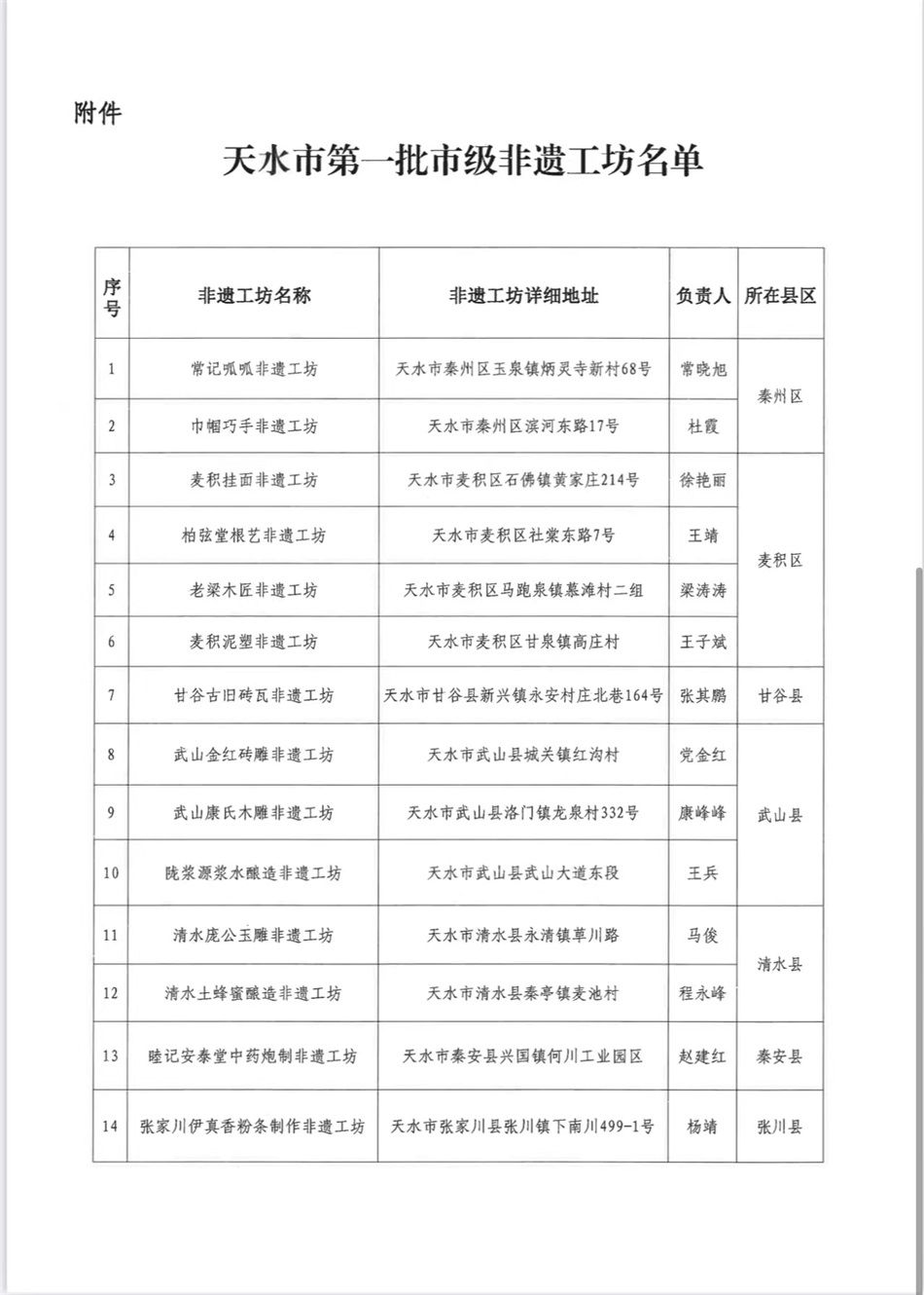 近日,由市文化和旅游局、市人力资源和社会保障局和市乡村振兴局三部门共同认定常记呱呱等14家非遗工坊为天水市第一批市级非遗工坊。至此,我市共有省级非遗工坊10家,市级非遗工坊14家。