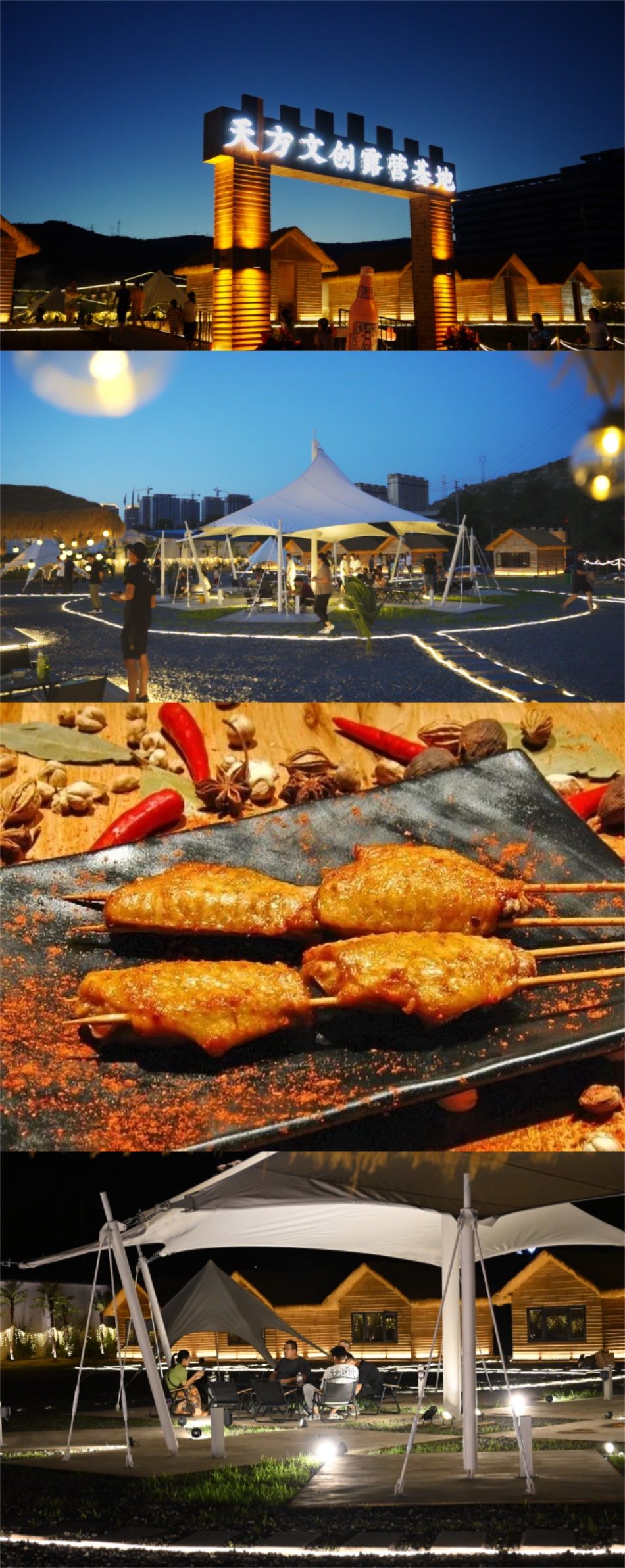【天方文创】位于秦安县郑川新城县医院向南300米,是一家集户外烧烤游玩于一体的露营基地。当夜幕降临,星空温柔地抚摸着大地,“天方文创露营基地”就是一个专为城市喧嚣中的你准备的绿洲。漫步于这个露营基地,你会沉浸在星辰大海,仿佛能触碰到这个宇宙的无尽边际。在这里,为你准备了鲜嫩多汁的鸡翅,香气四溢的羊肉串等多种优质的烧烤食材,再搭配精心甄选的凉菜,让你沉浸在烧烤的狂欢中。当炭火燃烧,美食在烤架上滋滋作响,一切都恰到好处,你可以品味那火焰中的香气,感受美食的温暖与诱惑,与家人共度美好时光,与朋友们分享彼此的故事!在这里,每一个瞬间都会变得难忘,充满欢乐和回忆。