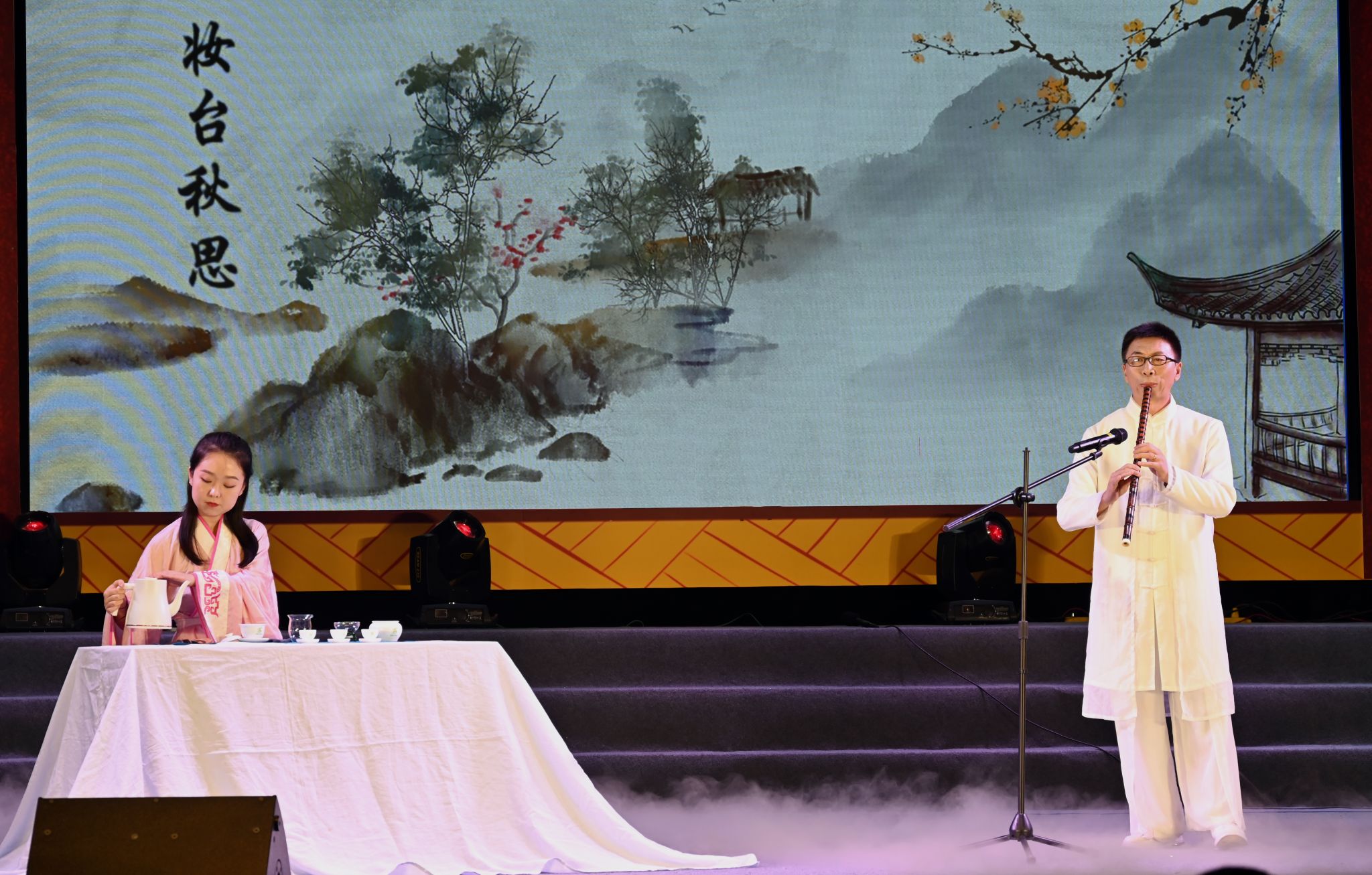 中秋诗会在古韵典雅的舞蹈《花朝月夕》中拉开帷幕,演出了朗诵《 送你一片月光 》《春江花月夜》《秦州杂诗十二·山头南郭寺》《月夜忆舍弟》《蜀道难》、琴箫合奏《 良宵引》、歌曲《天水的月亮》《 印象伏羲 》、洞箫独奏《妆台秋思》等精彩纷呈的节目。声情并茂的朗诵、触动心弦的歌声、优雅的舞姿、婉转悠远的琴箫演奏、行云流水的茶艺表演深深感染了现场的每一位观众。大家身临其境,感受着诗意盎然,荡气回肠的诗歌胜境,仿佛洗去了尘世的喧嚣,让人们的心灵得以栖息。