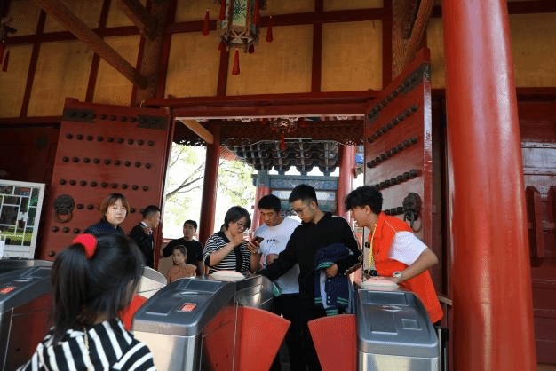为积极应对假日旅游高峰,从清晨开始,伏羲庙景区、天水市博物馆各岗位有序开展游客接待工作,在游客服务中心设置志愿服务岗,引导游客进行线上扫码预约,缓解人工售票接待压力。