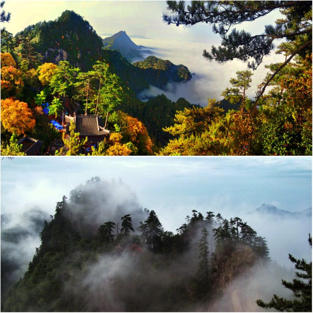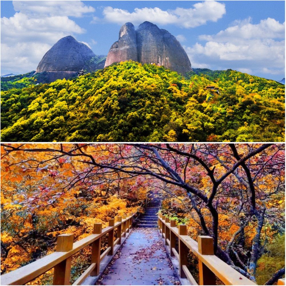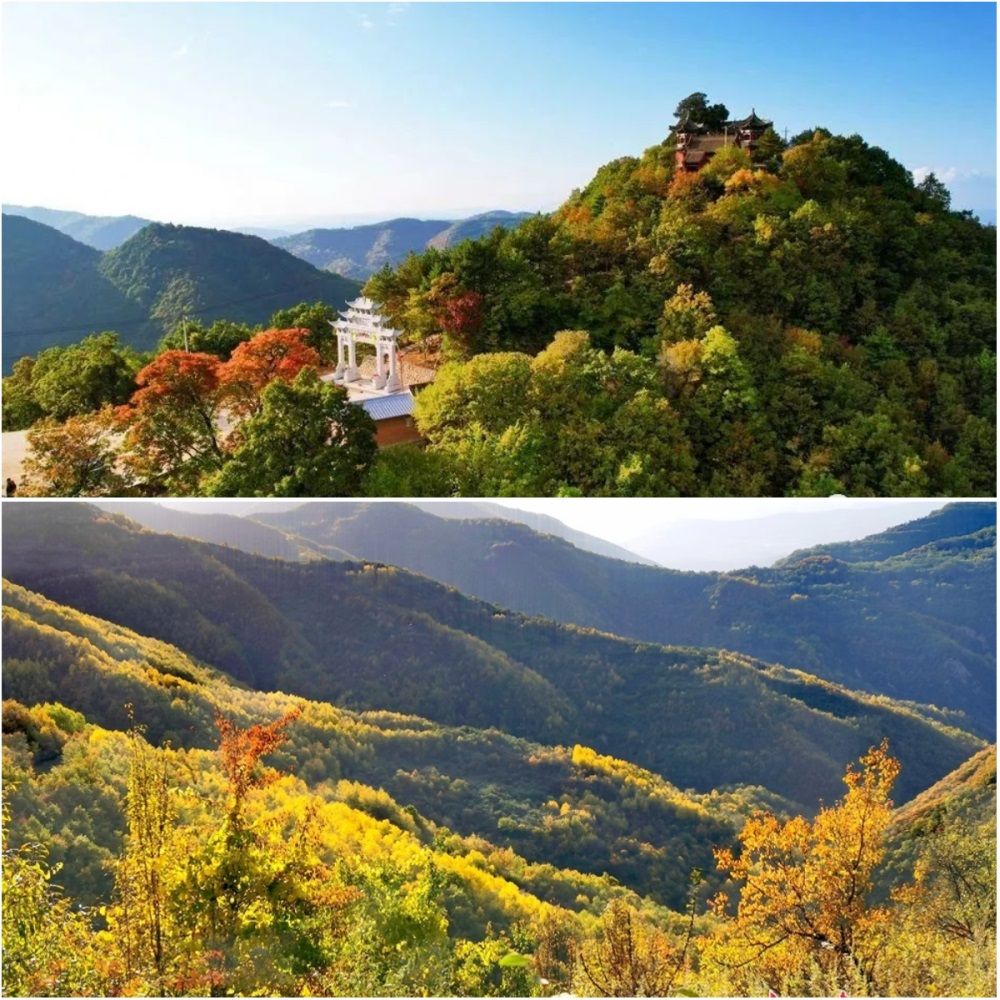 秋景之二石门山。石门山岩崖壁立,峭石千仞,古木参天,苍翠嫩绿,风光秀丽,素有甘肃“小黄山”之称。若早起上山,可观群峰捧旭日而出,而此时秋色亦愈加浓烈。