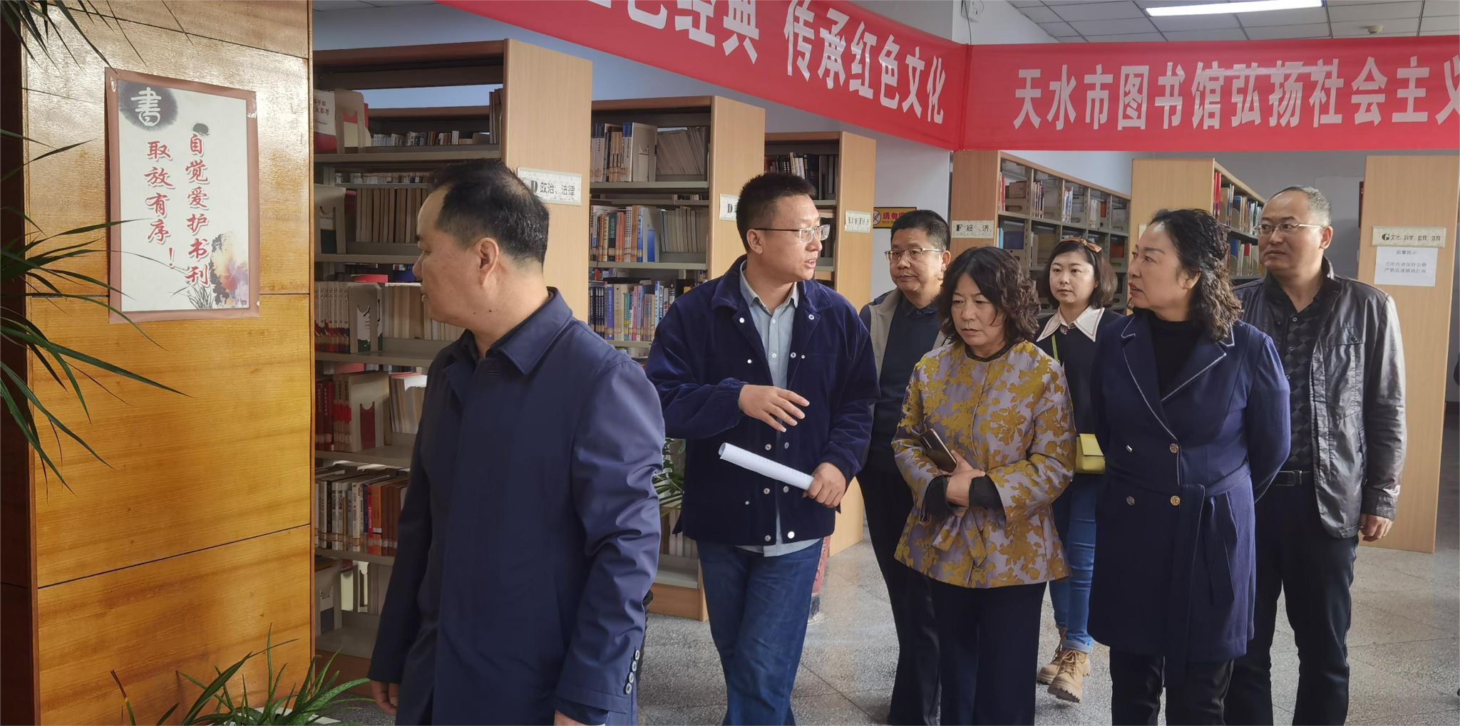 吴立新一行先后参观了天水市图书馆各借阅处、古籍部,通过实地查看、听取汇报等方式,详细了解了市图书馆建设和日常工作开展等情况。