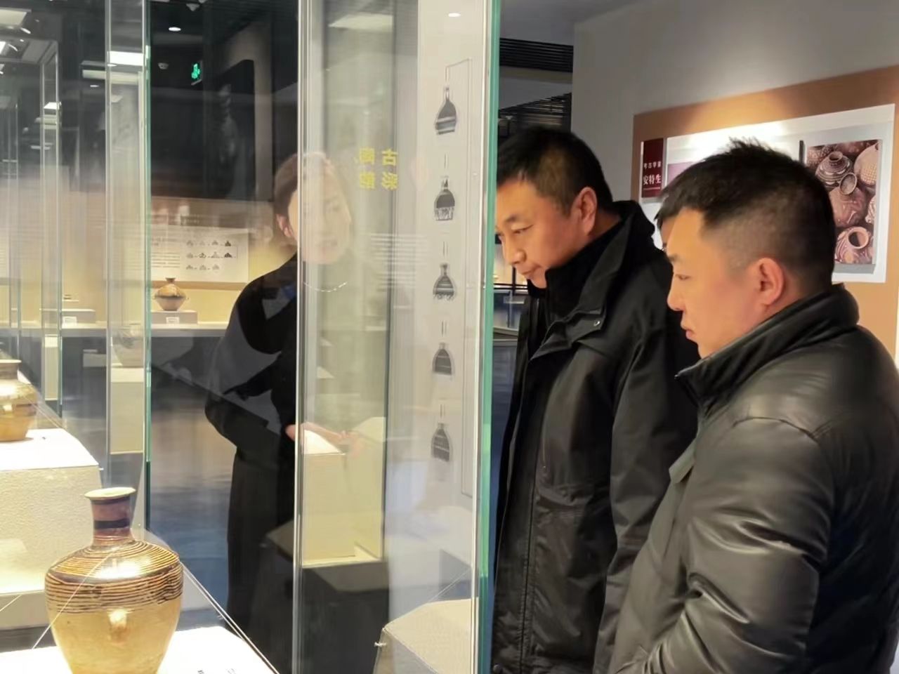 同时观摩了文创产品展示区、社教活动室、监控室等。双方就场馆基本陈列布局、文创产品研发、研学活动、社会教育活动等工作开展情况进行了深入的交流探讨。