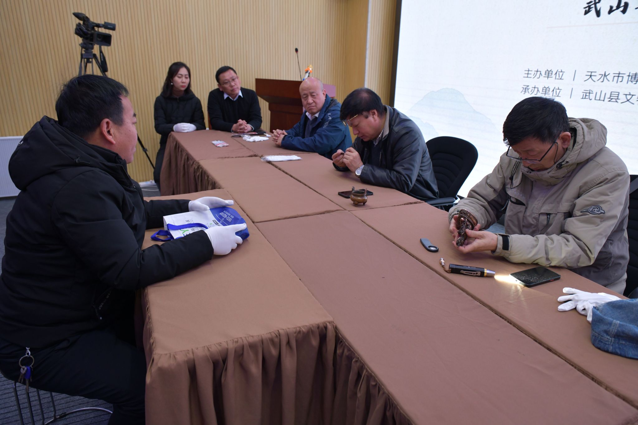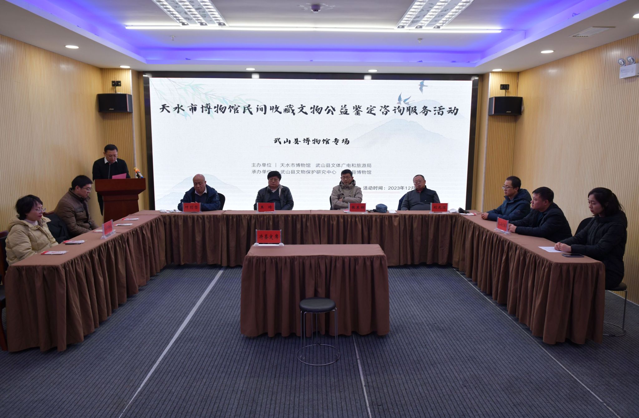 此次活动由天水市博物馆、武山县文体广电和旅游局、武山县文物保护研究中心联合主办,武山县博物馆承办,活动邀请甘肃省文物鉴定委员会专家成员张东辉、王琦、叶削坚、刘光煜4名专家现场鉴定。活动共分两个环节,第一环节为活动开展仪式,仪式由武山县博物馆馆长孟丽萍主持。孟馆长向与会人员浓重介绍了参加此次公益性鉴定咨询服务的专家,天水市博物馆副馆长张建军发表了致辞,武山县文体广电和旅游局副局长王玉峰作了总结讲话。第二个环节为公益性鉴定咨询活动环节,12名民间收藏爱好者持藏品按照排号顺序依次入场参加鉴定,专家详细询问藏品流传经历,对藏品真伪、年代、内涵、价值及后续保养、保护等问题为藏家答疑解惑。此次活动不仅是对武山县民间收藏水平的一次大检阅,也为藏友们提供了一个交流学习平台,对引导规范民间收藏行为健康发展具有重要的现实意义。