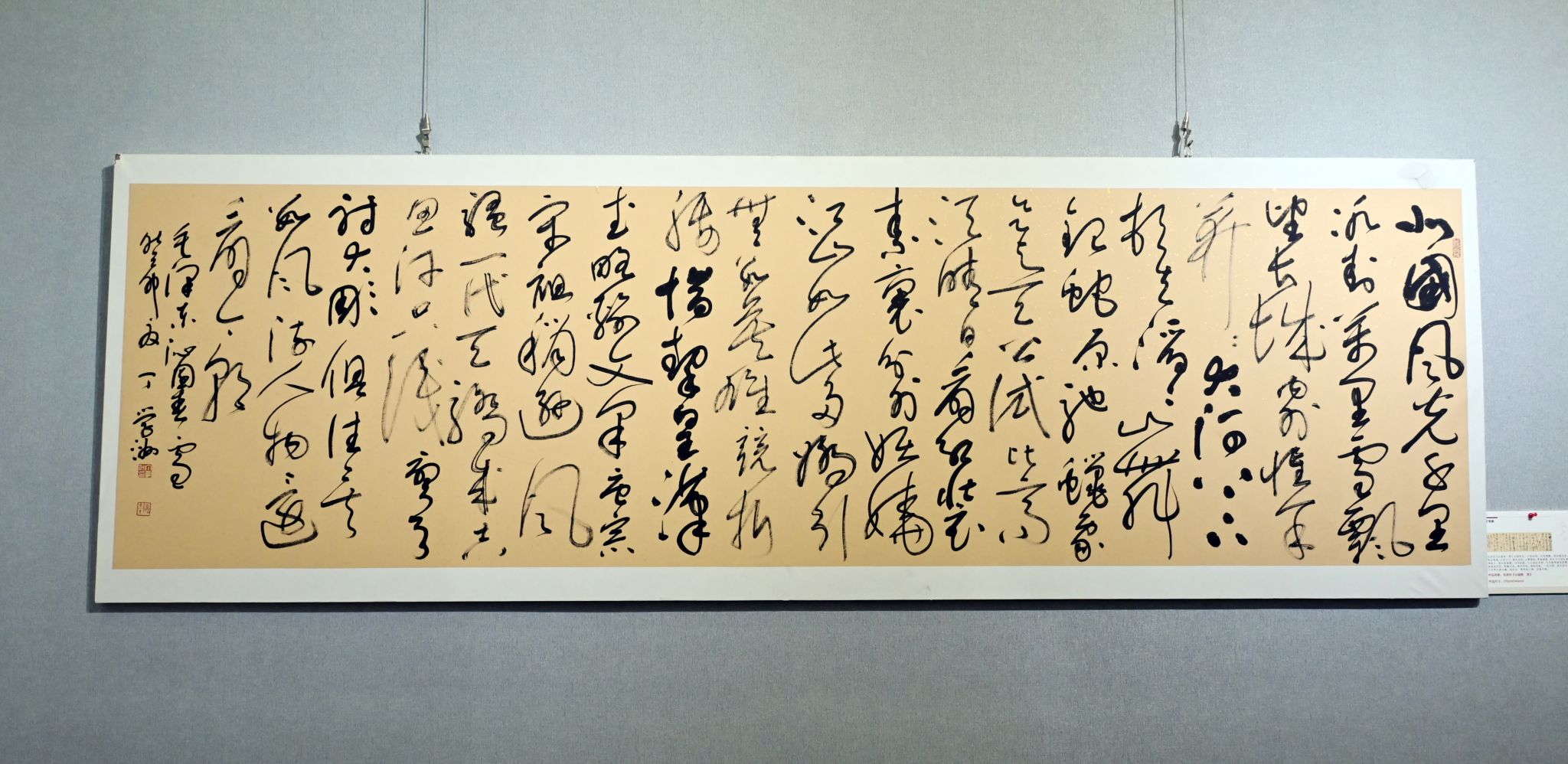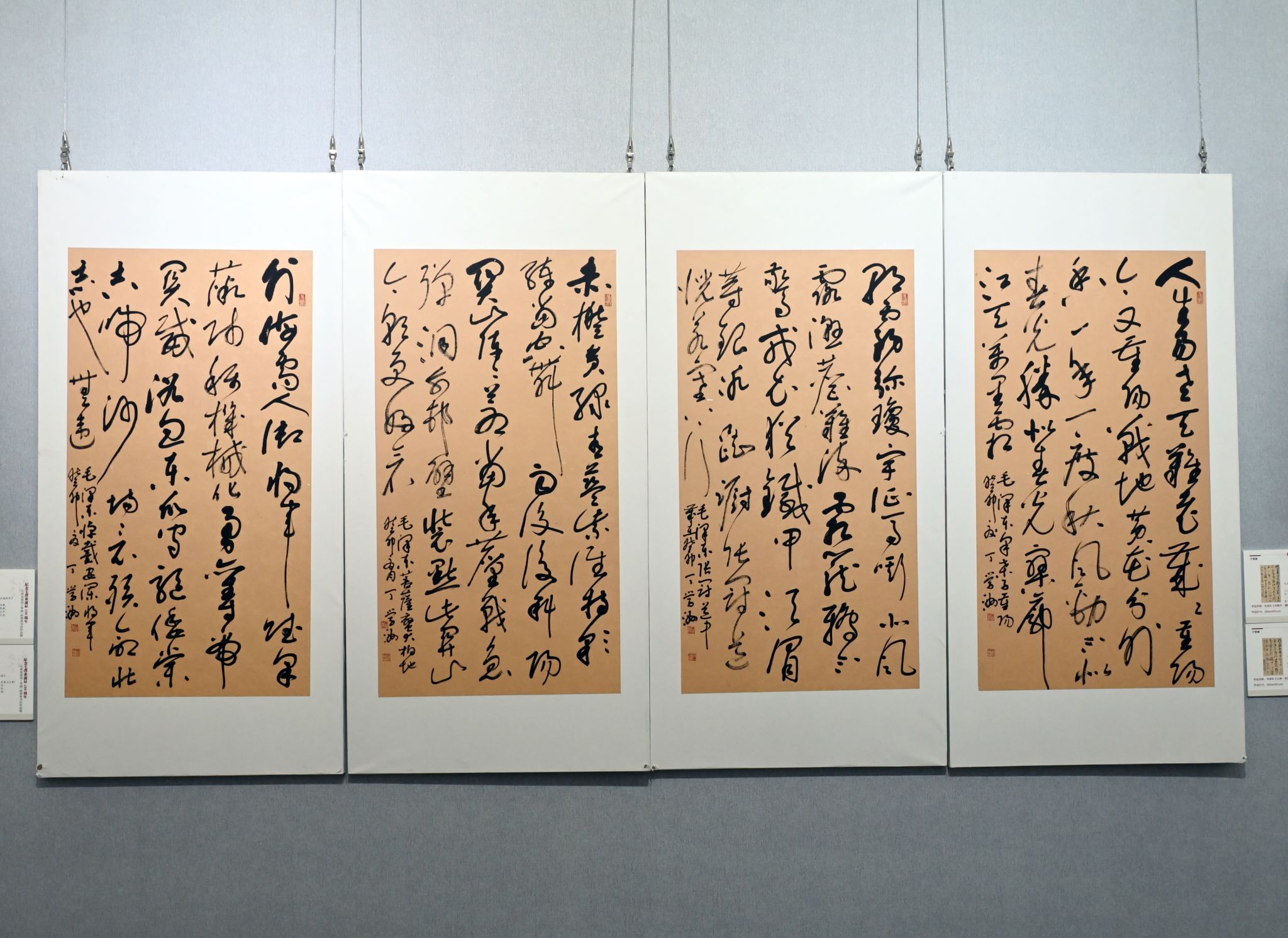 本次展览共展出以毛泽东诗词为内容书写的书法作品130幅。一代伟人毛泽东,其一生创作诗词数百首,诗词境界博大开阔、气势磅礴、蕴含丰富,以现实主义和浪漫主义相结合,表达了老一辈无产阶级革命家伟大的爱国主义、英雄主义和共产主义革命理想。两位书法家用笔墨诉说了对毛泽东诗词精神内涵和艺术价值的深入领悟,潜心创作了大量富有时代精神的书法佳作,文气墨韵融汇,相映成趣,气吞万里如虎。