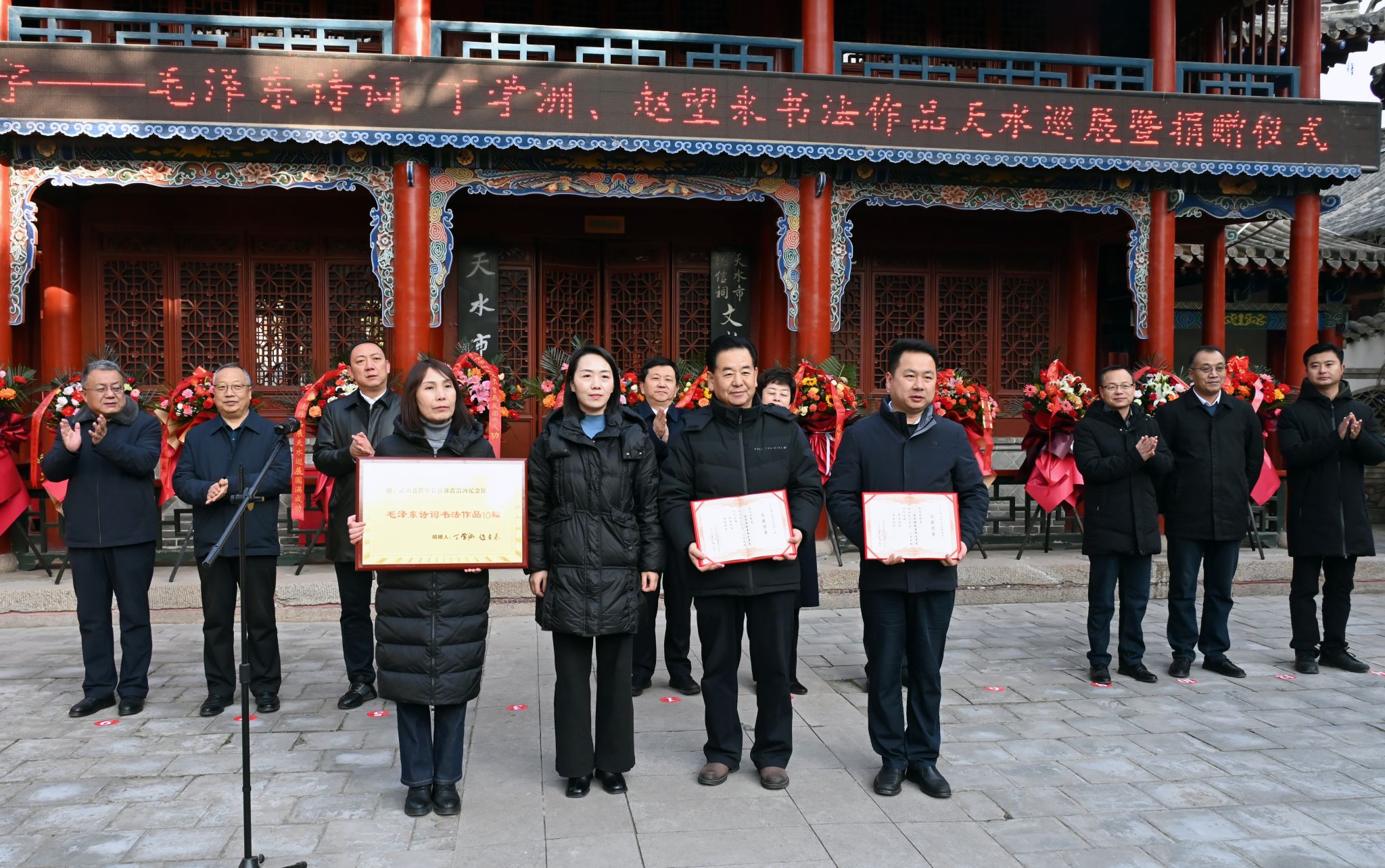 12月19日,为纪念毛泽东同志诞辰130周年,由甘肃省文化和旅游厅、甘肃省文学艺术界联合会、甘肃画院、甘肃省书法家协会主办,中共天水市委宣传部、天水市文化和旅游局、天水市文学艺术界联合会承办,天水市书法家协会、天水市文化馆等单位协办的“激扬文字——毛泽东诗词”丁学洲、赵望来书法作品天水巡展暨作品捐赠仪式在天水市文化馆隆重举行。
