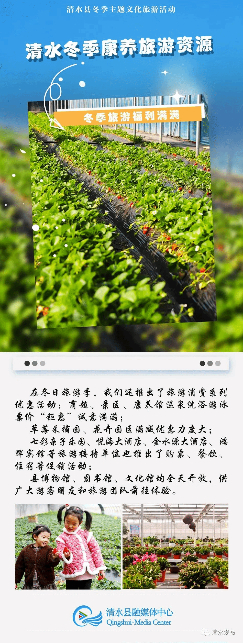 采摘赏花农康之旅。红堡镇草莓采摘园→温沟村花卉园区→清水县轩辕温泉→温泉村(上王庄)省级文旅振兴乡村样板村。