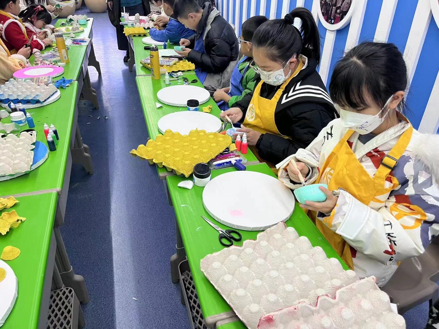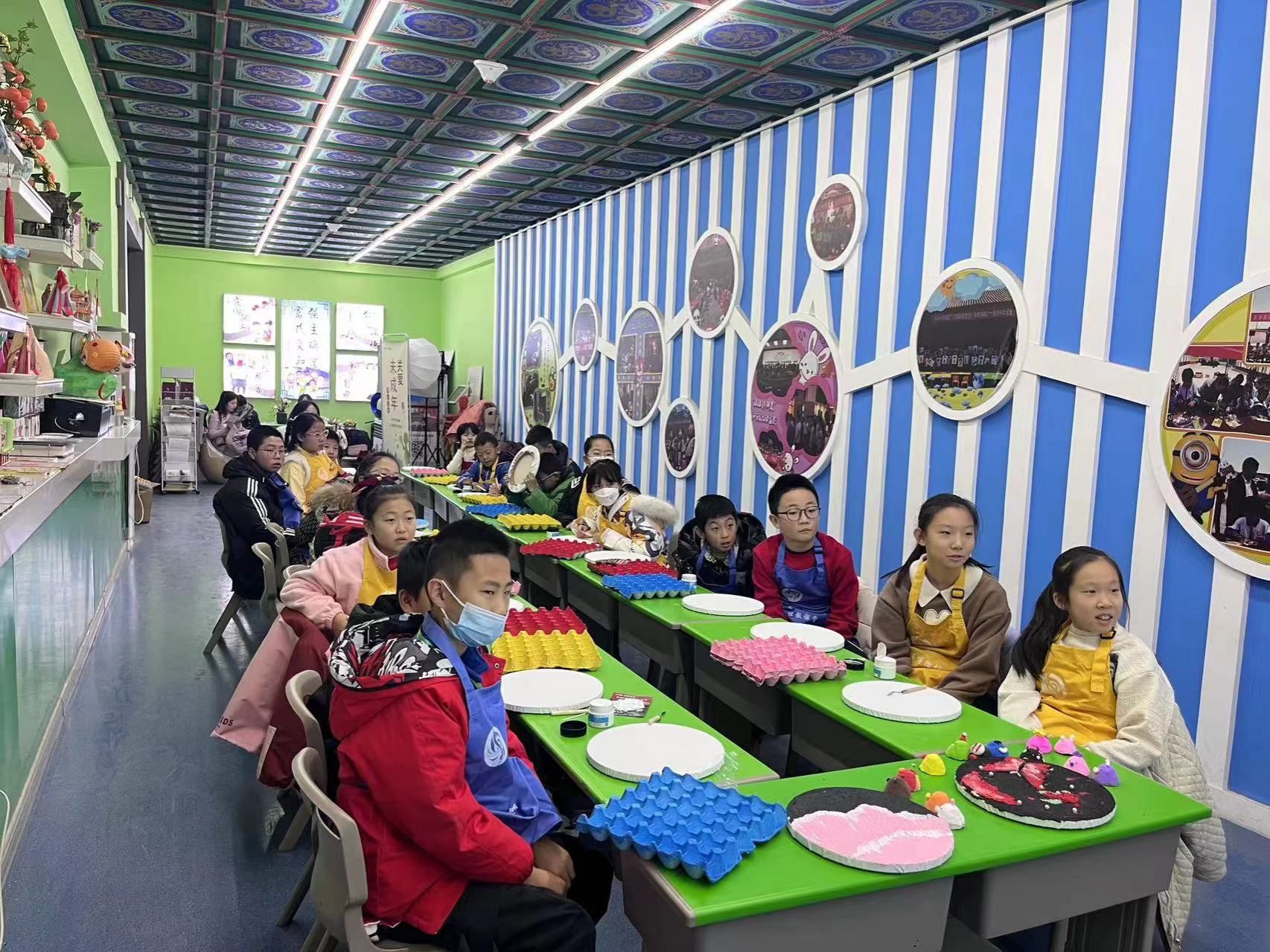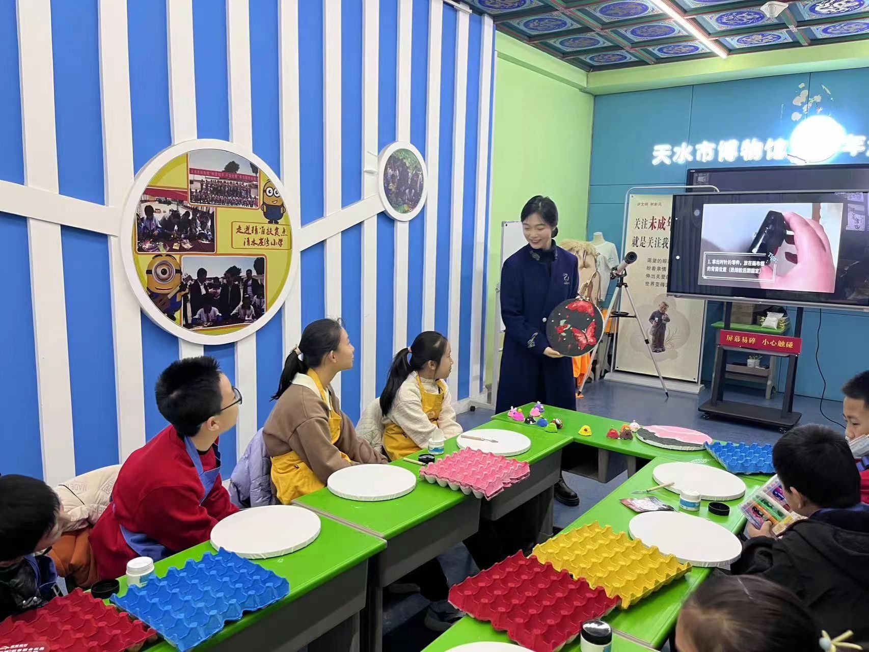 活动中,宣教老师先以ppt的形式介绍了元旦的来历、节日习俗以及农历与公历的区别等相关知识。随后,宣教老师指导大家用蛋壳制作挂钟,体验环保材料在手中的持续利用的过程。手工制作可以提高青少年的动手能力,也能提升他们的感知力、观察力和创造力。同学们用自己的巧手做出一个个独具匠心的蛋壳挂钟,不仅体验了手工制作带来的乐趣,也感受到了新年的气氛,在博物馆中度过了一个愉快的元旦。