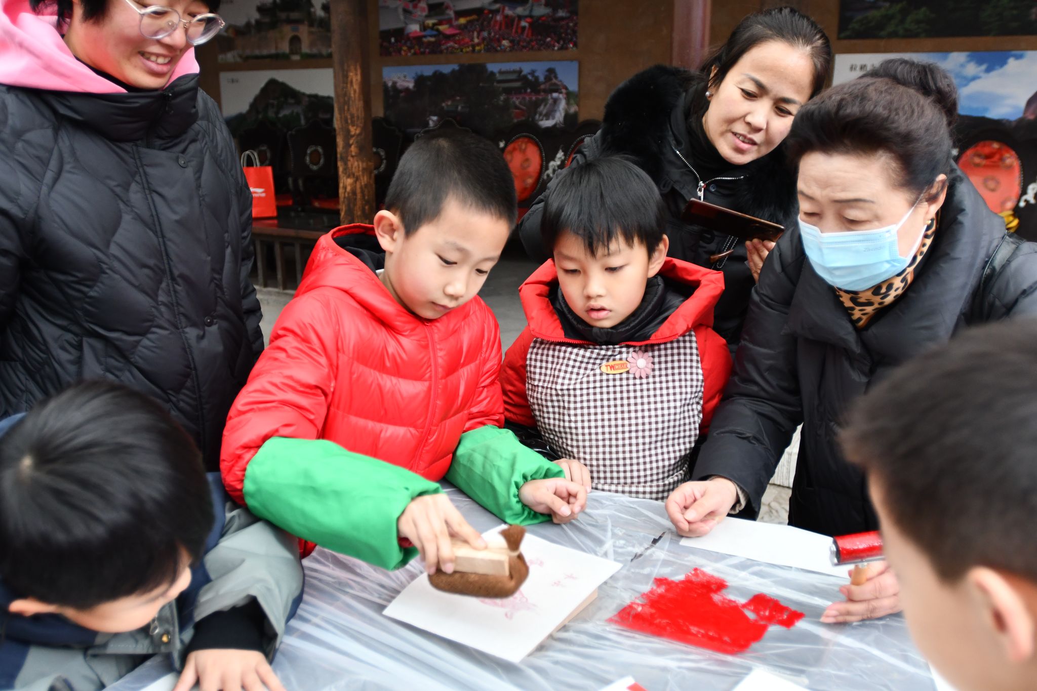 腊八节年画制作主题社教活动吸引了50名小朋友和家长的热情报名参与。活动当天,社教专员通过一张张精心准备的幻灯片给大家介绍了腊八节和年画的由来、发展历程、制作方法、象征意义等相关知识。活动现场,社教员给孩子和家长们分发了木版年画、纸张、颜料等工具,并指导家长和孩子们一起动手绘制了年画。通过年画制作体验,不仅培养了小朋友的动手能力,同时也让父母和孩子一起体验了绘制年画的快乐,感受浓浓的春节节日氛围。
