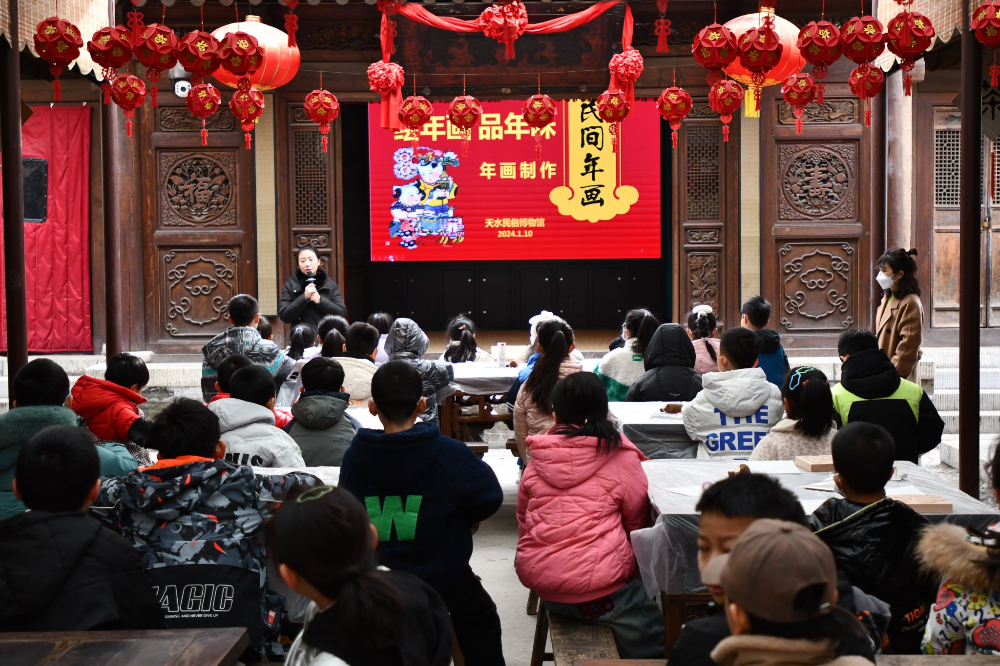 为了传播中国传统年俗文化,在青少年中普及木板年画这一非遗项目,烘托欢乐喜庆的传统春节气氛,在腊八节当天,天水民俗博物馆举办了“绘年画 品年味”腊八节主题社教活动。此次活动还与天水广播电视台文旅频道联合,进行了现场录制和采访互动,进一步加大了社会教育活动的受众参与面与宣传力度。
