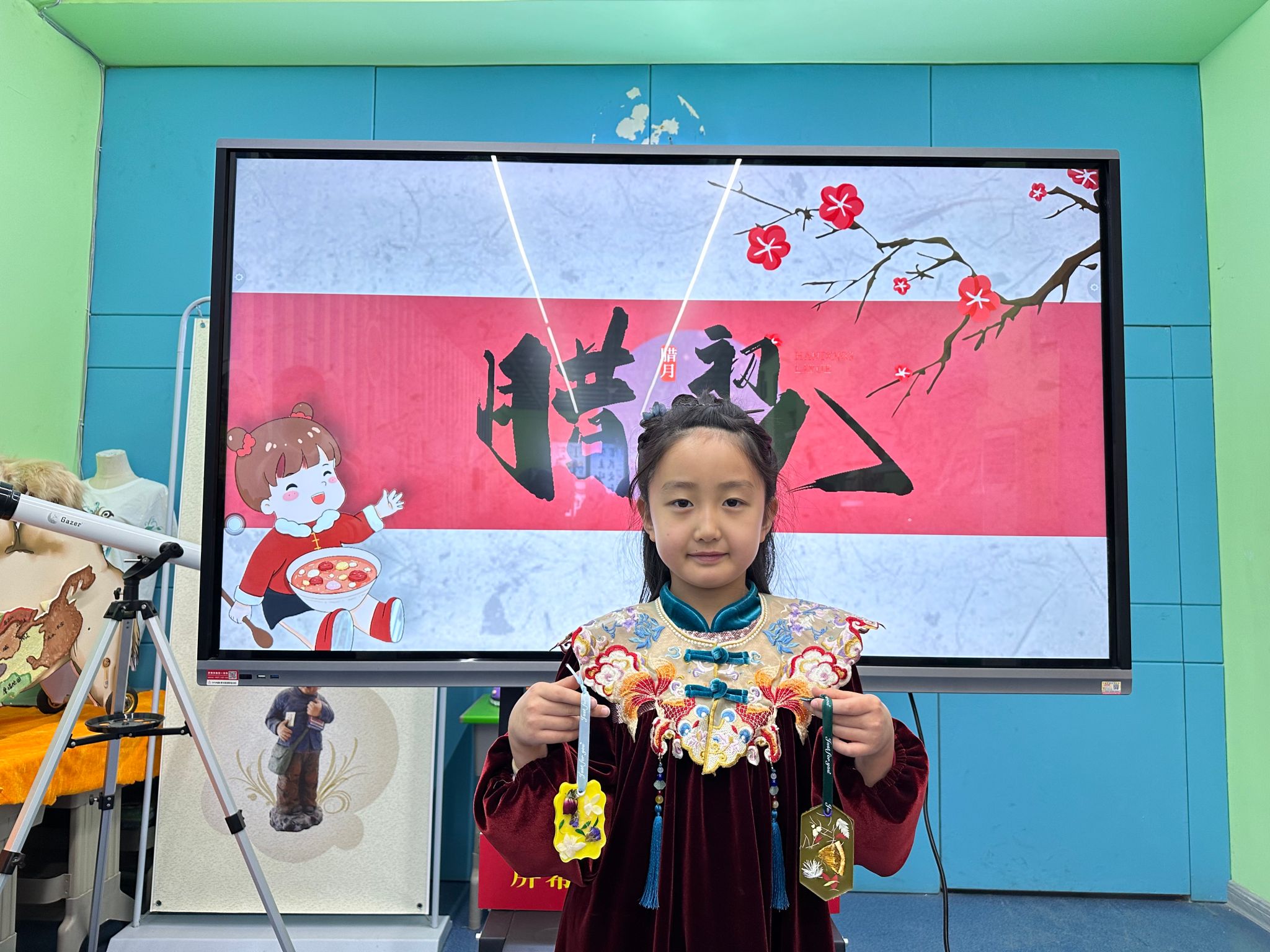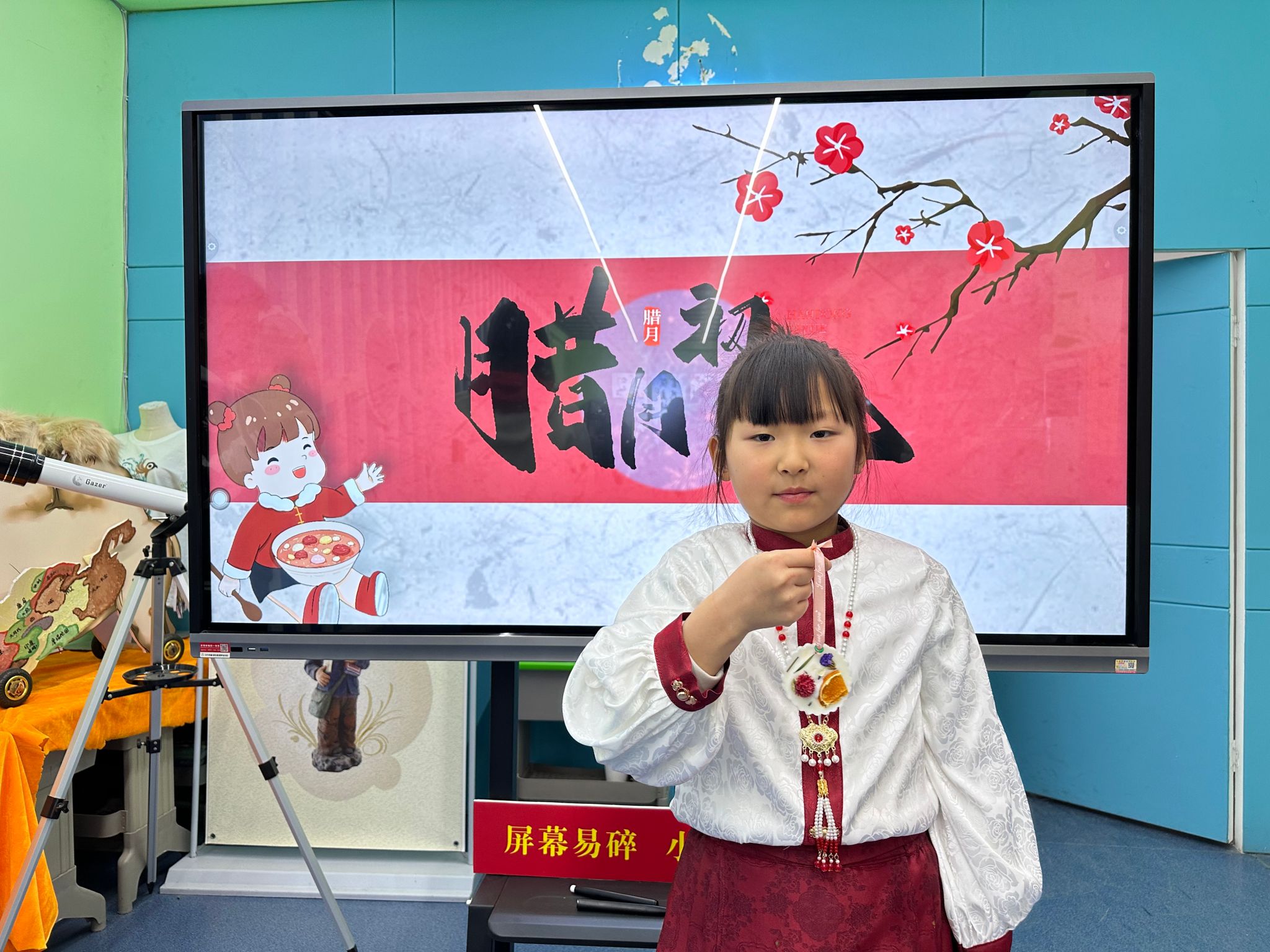 在课堂上,宣教老师通过PPT的形式为同学们介绍了“腊八节”的来历、习俗以及腊八节的传说。通过互动交流的形式,了解五谷相关知识,加深了孩子们对于腊八节的认识,大家积极参与其中,纷纷沉浸在浓厚的节日氛围里。