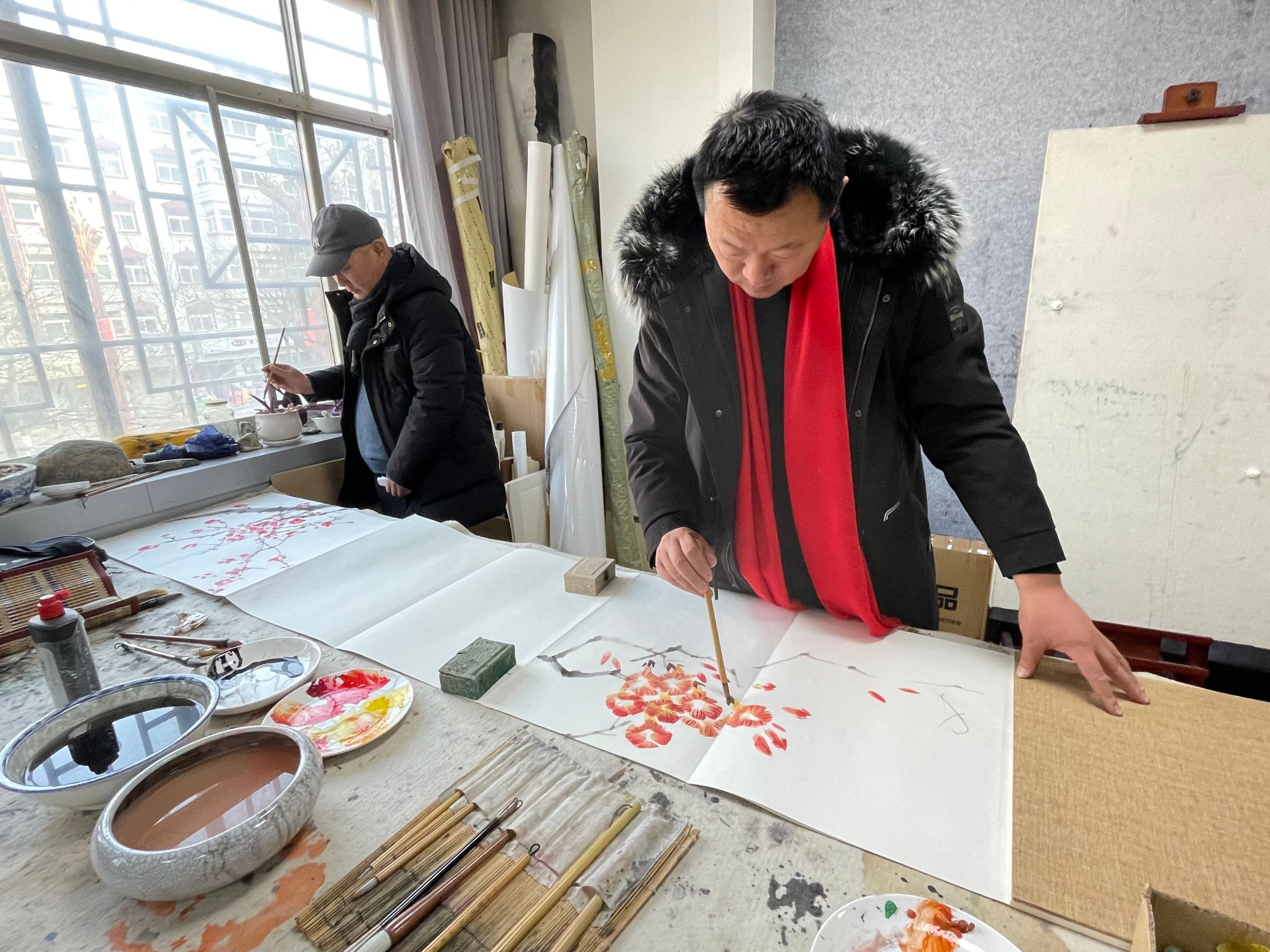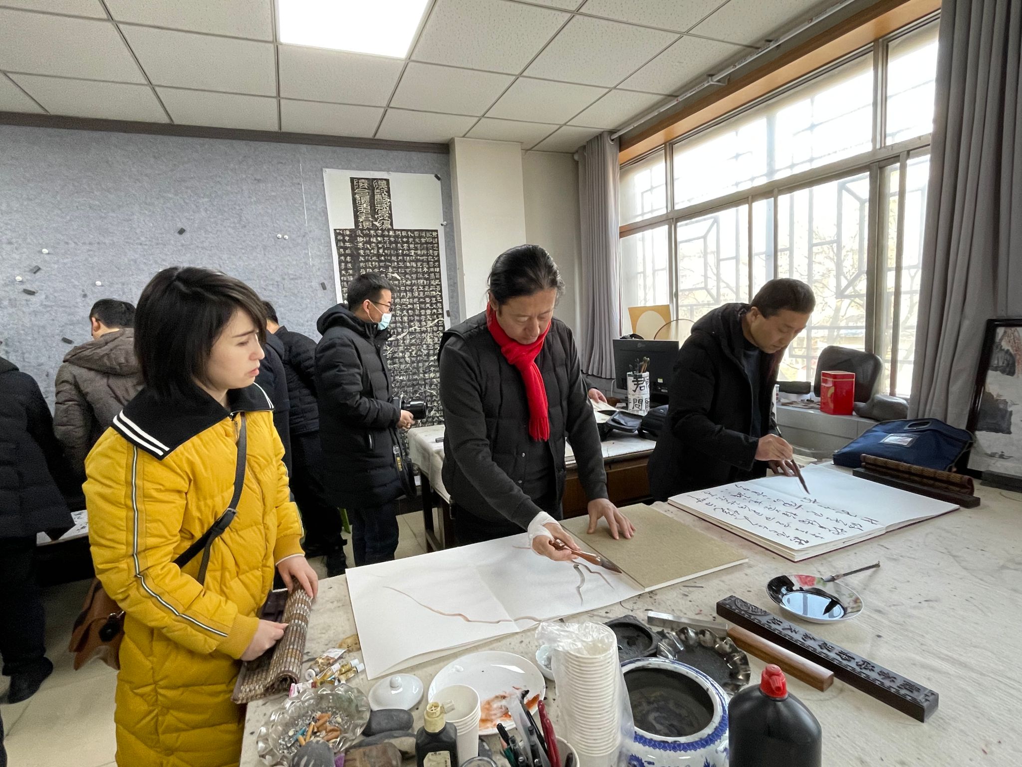 展览参观结束后,市文化馆书画老师们开展了笔会交流活动。老师们即兴挥笔,一幅幅书画作品跃然纸上,他们以书言志、以画寄情,为新春佳节的到来送上一道文化大餐。