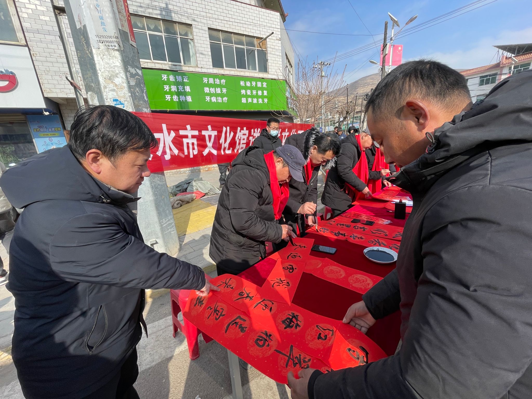 当天下午,市文化馆工作人员及书画老师们赴鸳鸯镇开展送书画下乡活动。他们现场为群众义写春联、福字等,红红的对联、暖暖的心意,让群众感受到浓浓的年味和新春的美好愿景。