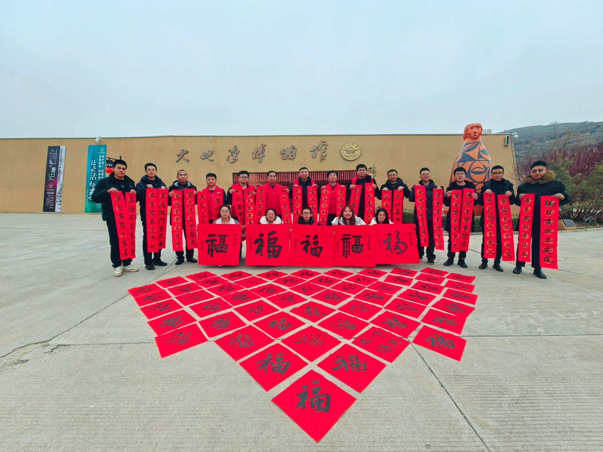 “无联不成春,有联春更浓”。新春佳节贴春联,是中华民族的传统习俗,为弘扬这一传统文化,活动前,大地湾文保所精心准备,邀请了周边青年书法老师,现场书写了一幅幅散发着墨香的春联和“福”字150余幅,既有辞旧迎新的祝福和平安吉祥的愿景,也有对美好生活的期盼。