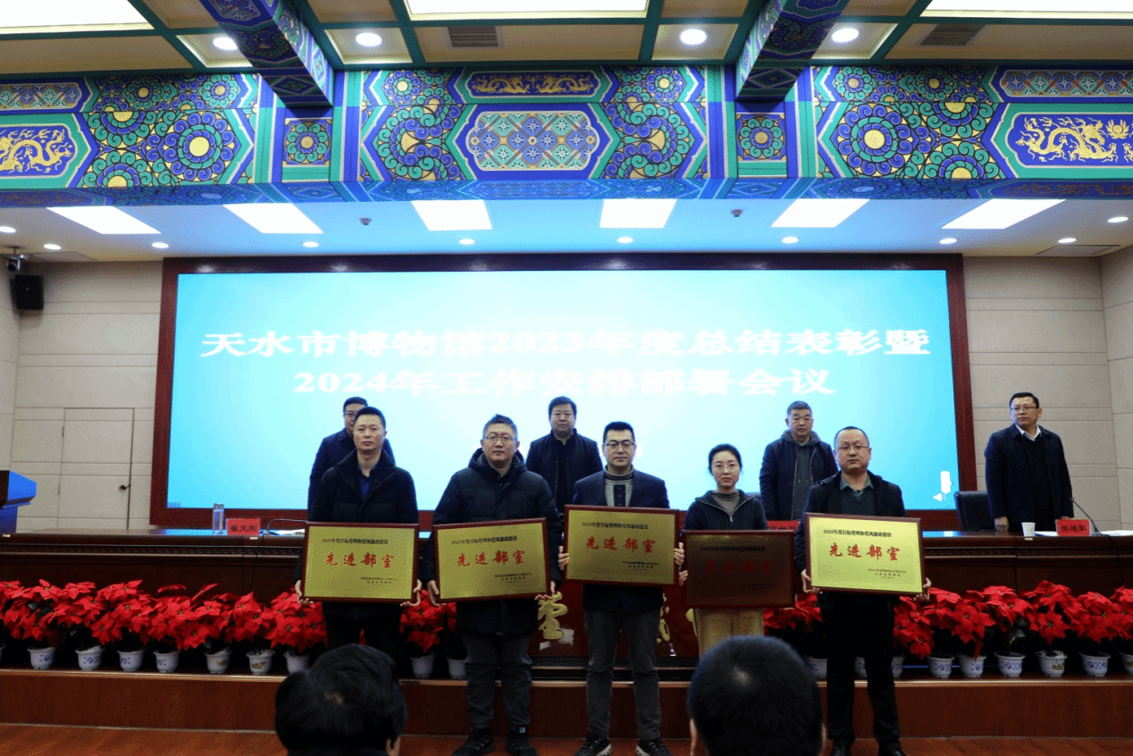 会议宣读了天水市博物馆关于表彰2023年度先进部室和先进个人的决定,对2023年度目标管理和党风廉政建设先进部室、精神文明建设先进部室、安全目标工作先进部室、年度先进工作者、部室管理先进个人、优秀社教工作者、优秀宣传工作者、优秀微党课讲述人、优秀志愿者、安全工作先进个人进行了表彰奖励;随后,馆领导与部室主任代表签订了《2024年目标管理和党风廉政建设责任书》。