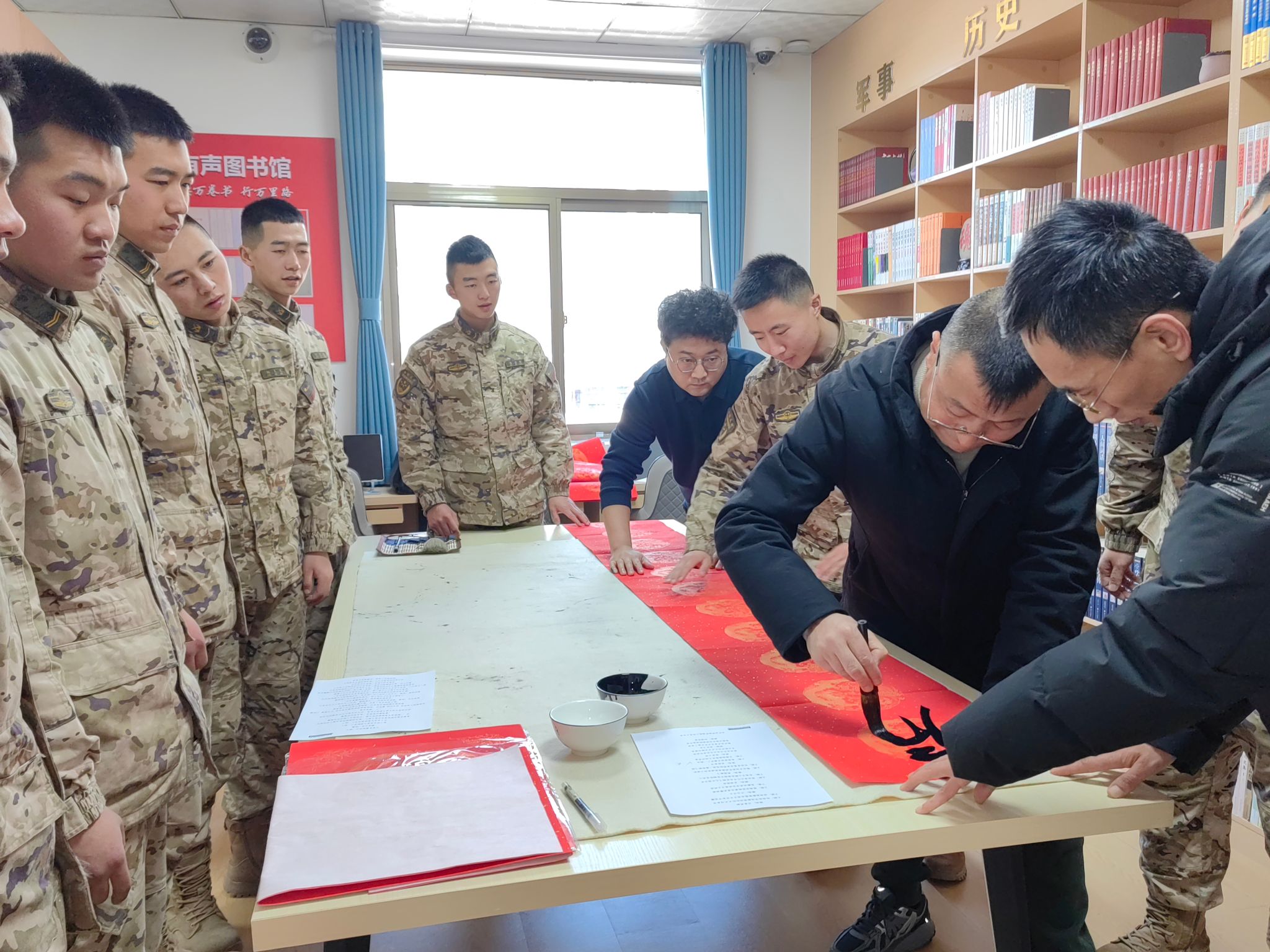 本次更新流转的一批图书均是事先征求广大武警官兵的阅读需求后精心挑选的,以军事、名人自传、政治、哲学和历史类为主,图书内容丰富、形式多样,受到了大家的一致好评。随后,市图书馆组织我市知名书法家和馆内书法爱好者现场挥毫泼墨,书写红红火火的春联,让大家在寒冷的冬天感受到了无比的温暖。