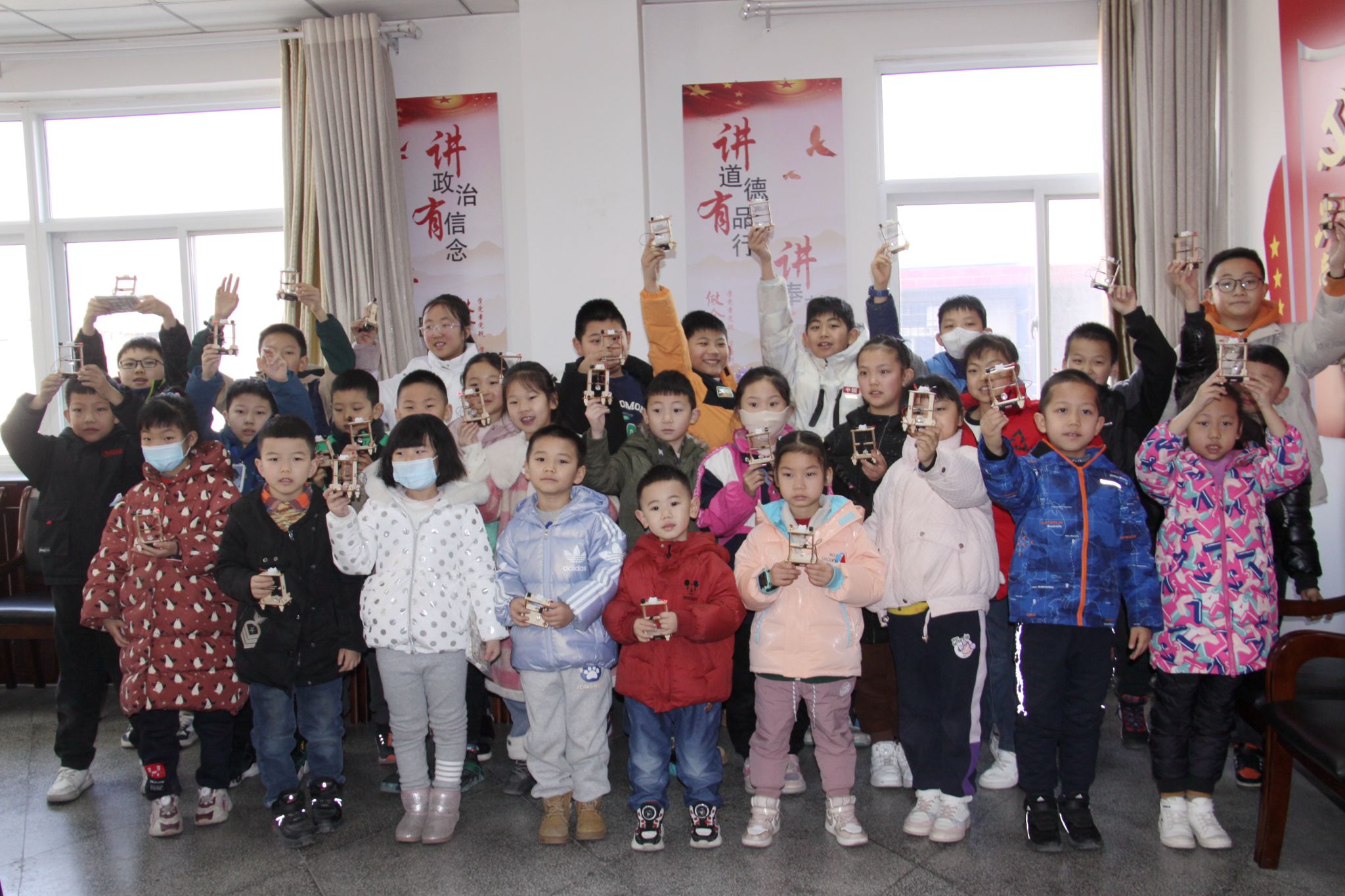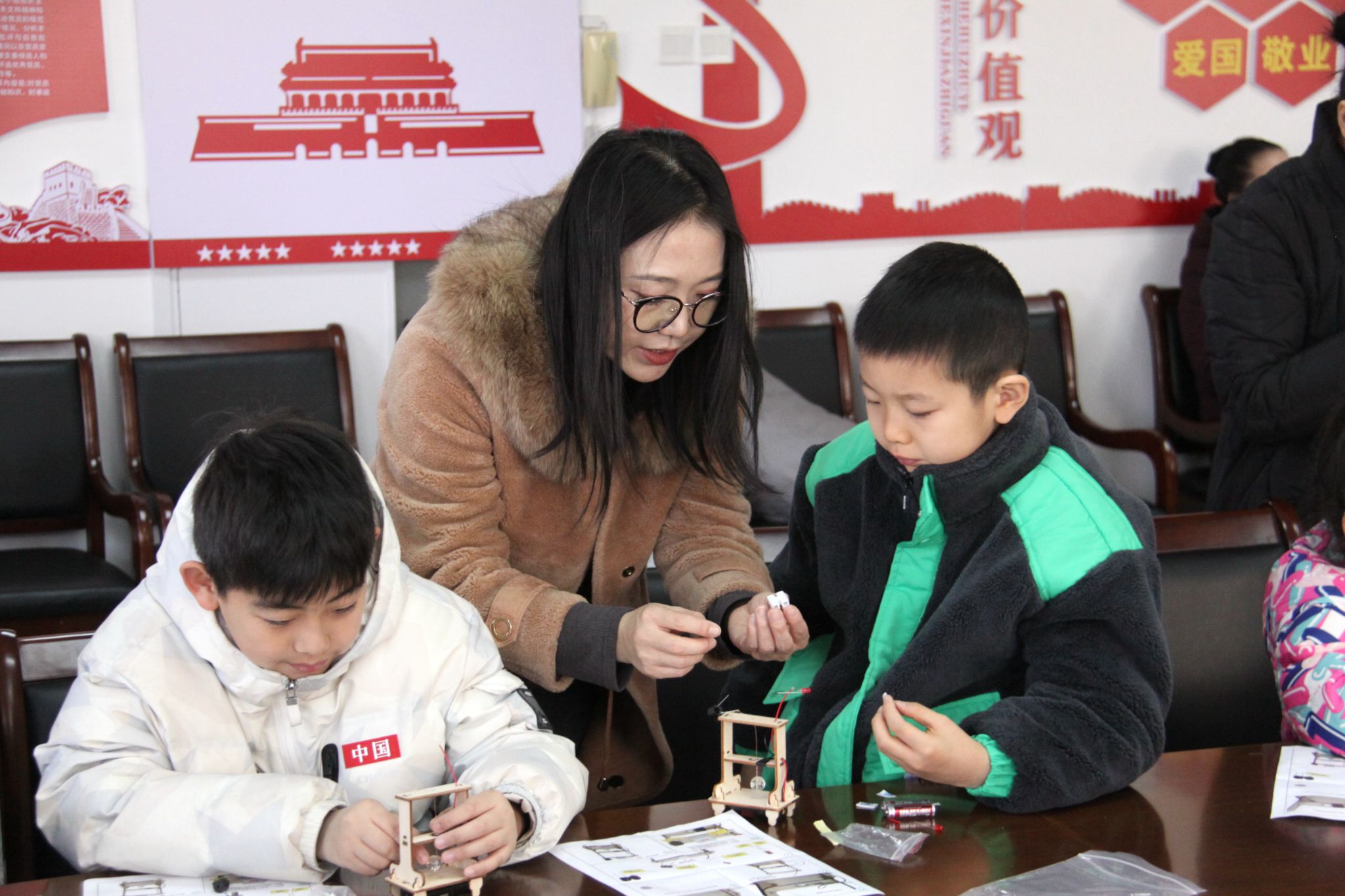 接着工作人员向前来参加活动的小朋友们分发手工材料,利用闭合电路的原理,完成声、光、电为一体的电子小制作“地震报警仪”,在范老师的带领下,孩子们有模有样完成了DIY地震报警仪。随后,大家利用制作完成的报警仪进行了实验,模拟地震时的场景,观察报警器是否工作或报警。活动最后,大家拿着自己亲手制作的地震报警仪进行了合影留念。