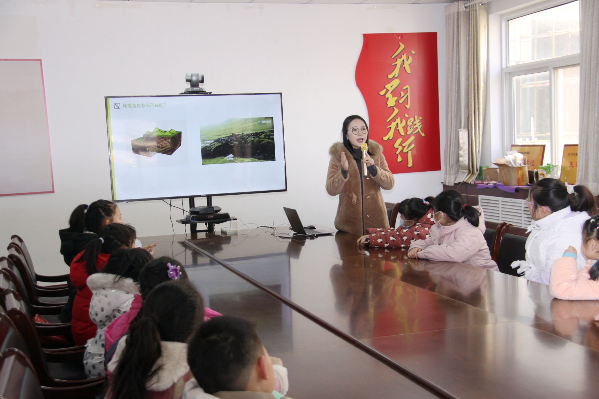 活动过程中,范老师首先为小朋友们播放地震科普视频,讲解地震的由来、地震发生前兆、地震的危害、地震防护措施等知识,并结合课程主题为小朋友们准备了有趣的科学小实验“地震报警器”DIY,加深他们对知识的理解。