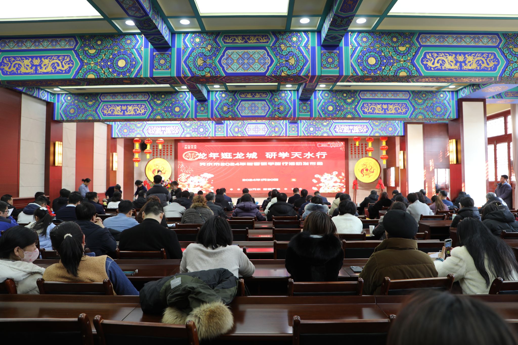为贯彻落实省文化和旅游厅及省文物局“龙腾盛世 博动陇原——博物馆里过大年”有关精神,丰富人民群众精神文化生活,营造欢乐祥和的春节氛围,充分发挥博物馆资源优势,助推校外教育和“双减”工作。1月30日下午,天水市文化和旅游局发布了以“龙年逛龙城 研学天水行”为主题的2024年冬春研学旅行活动发布会,该发布会由天水市博物馆承办并在会上介绍了本馆精品研学课程。