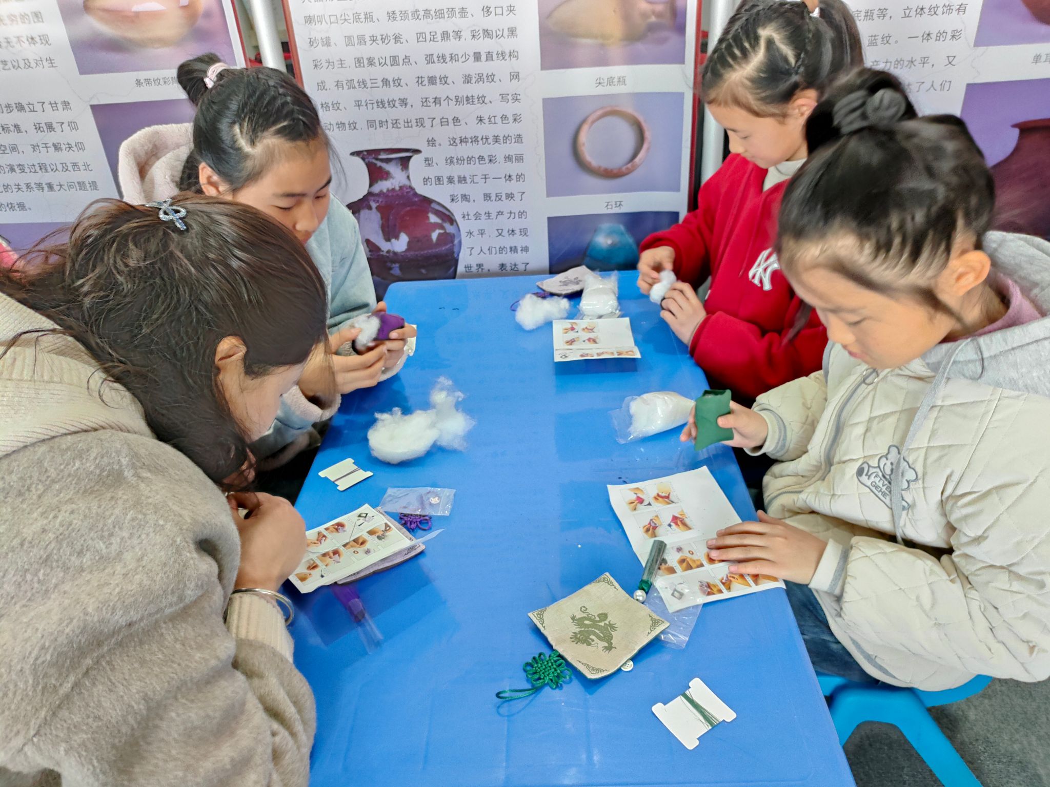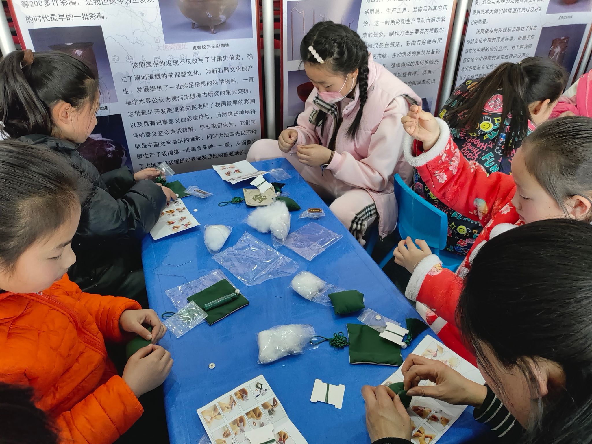 为大力弘扬中华民族优秀传统文化,充分发挥传统节日的思想熏陶和文化教育功能,2月16日,大地湾博物馆开展了春节系列活动之“龙腾方寸贺新春——龙年香囊制作”主题社教活动。活动开始前,学生们在讲解员的带领下参观了大地湾博物馆基本陈列“文明序曲——大地湾遗址考古成果展”和“创意与历史”文创设计大赛作品展。