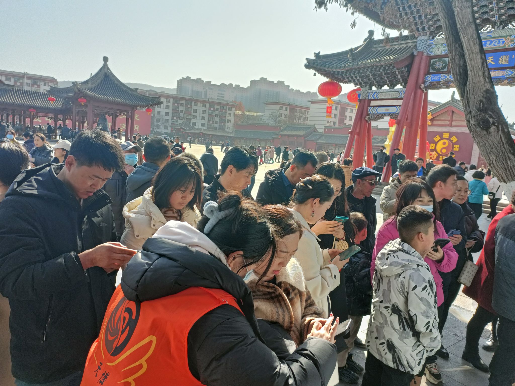 为营造伏羲庙春节期间浓厚且安全有序的节日氛围,天水市博物馆在伏羲庙景区悬挂传统灯笼1000余个、龙旗数十面,在伏羲庙广场制作“龙腾盛世”大型艺术彩灯两组,并在伏羲庙前院推出了“喜迎龙门”灯展,后花园布置了“庙趣横生”灯谜竞猜以及泮池的“鱼跃龙门”景观,为广大市民在春节期间献上一份色彩缤纷的灯光盛宴。整个伏羲庙彩灯高挂、鲜花盛开、龙旗飘飘,真正体现了春节文化活动欢乐、和谐的宗旨,营造了舒适、安全、喜庆的节日氛围。