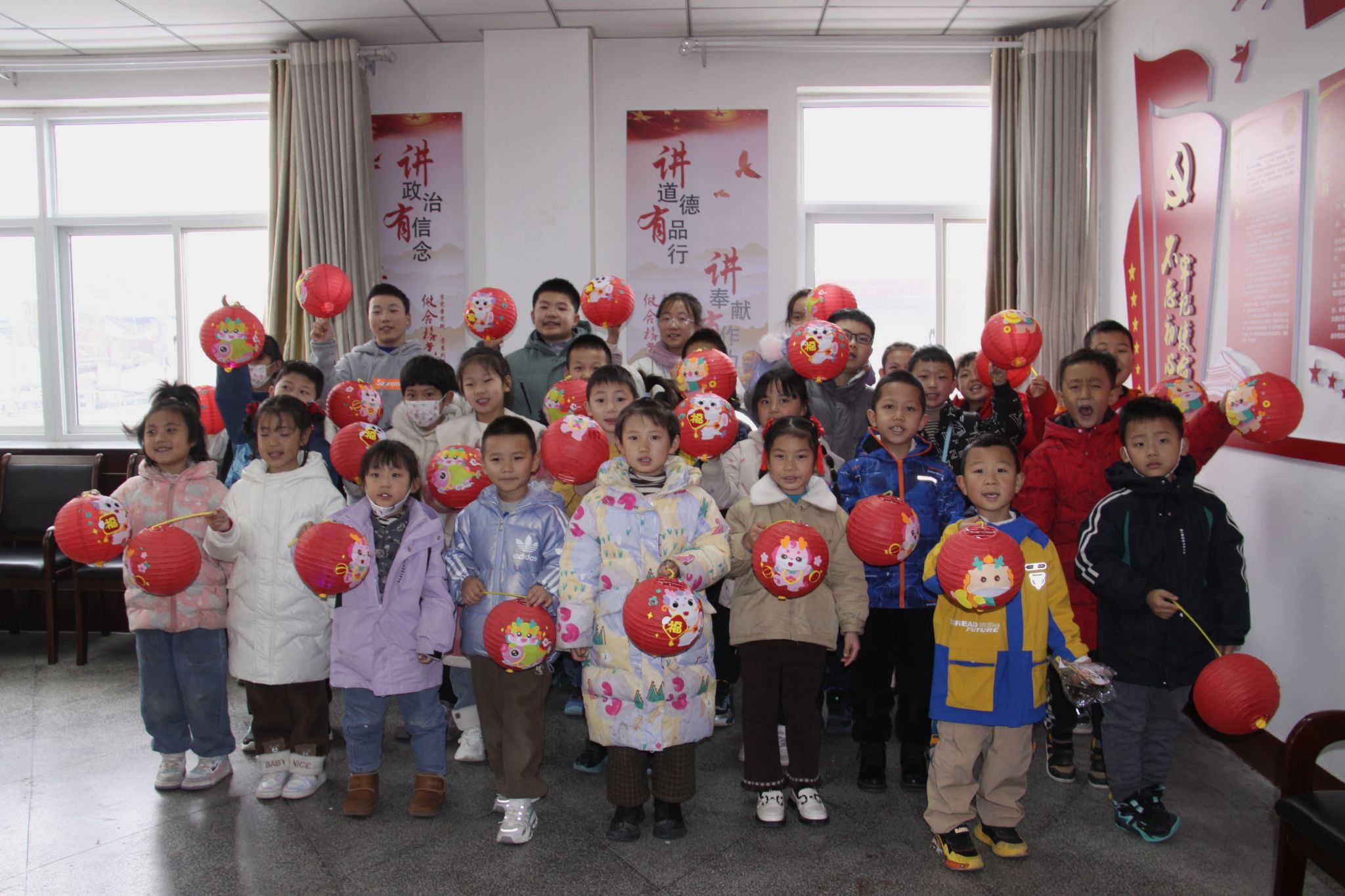 活动最后,大家纷纷举起自己制作的灯笼拍照合影留念,红彤彤的灯笼和孩子们高兴的脸庞相映生辉,表达了孩子们对幸福生活的期盼。