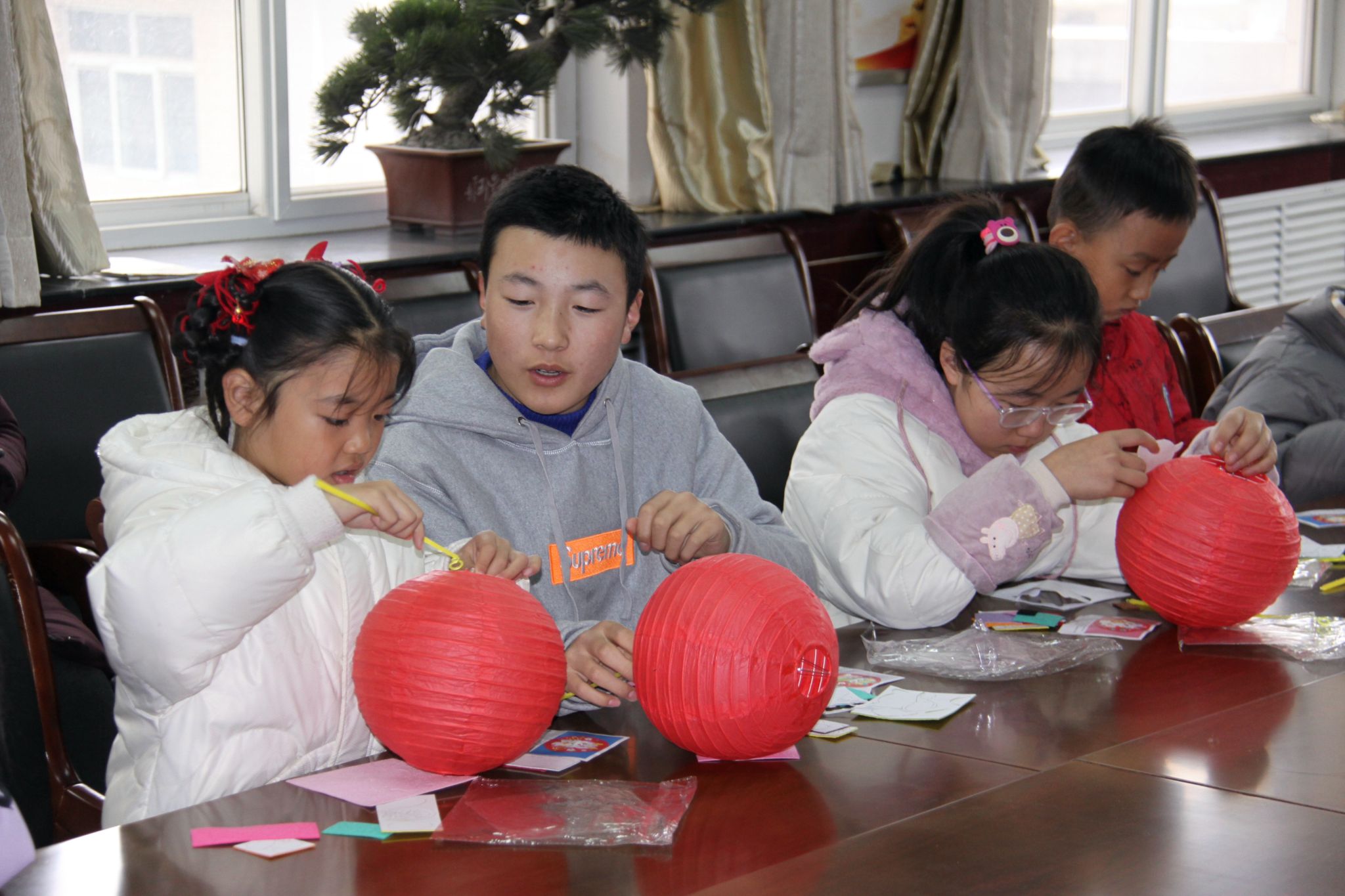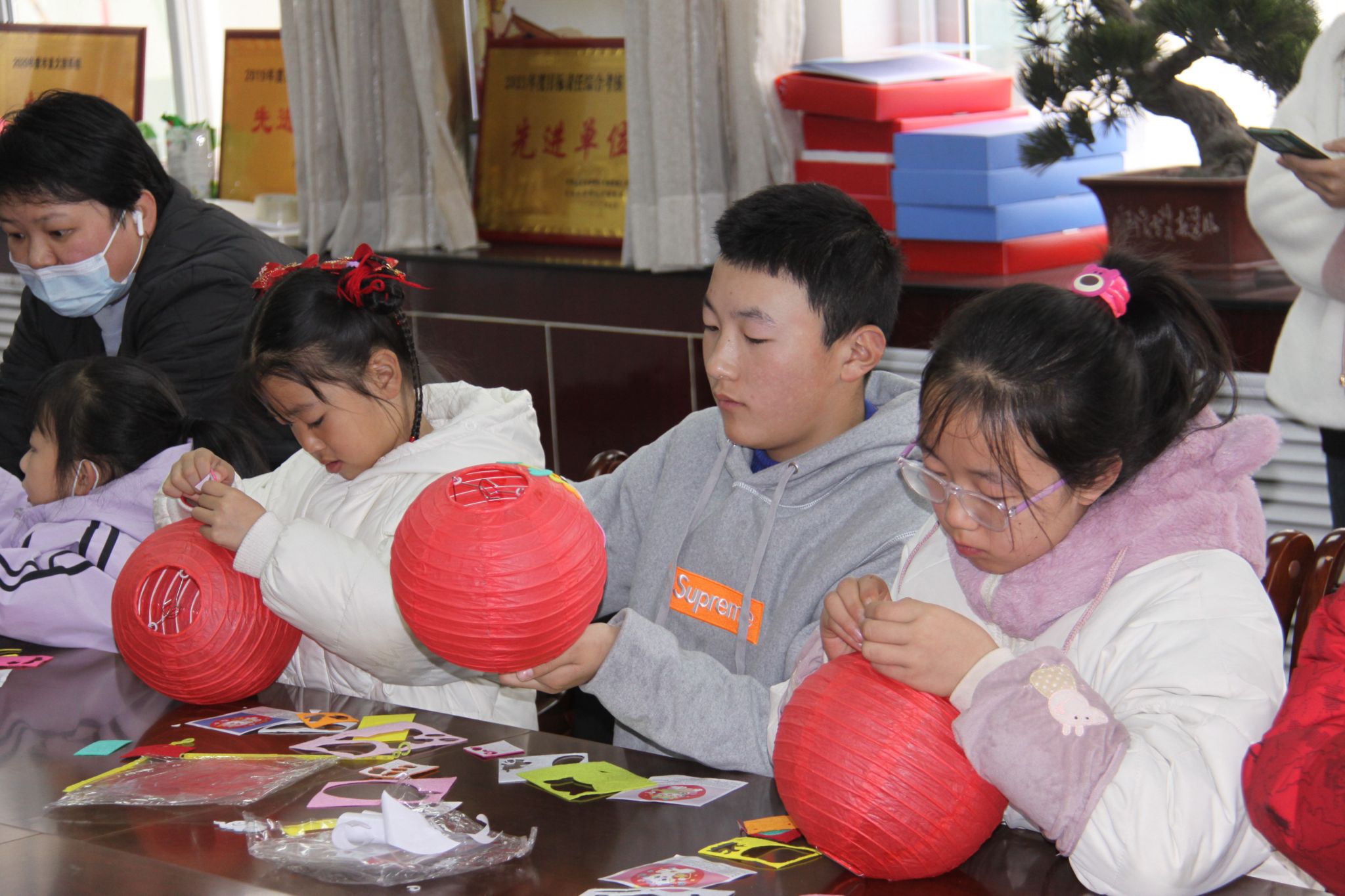 活动现场,范老师为小读者们分享了元宵节的来历和传统的庆祝方式,并向孩子讲解了灯笼的传说由来以及文化理念,最后在家长的协同下,通过一步步的搭建、固定、组装、粘贴,一个个漂亮的灯笼呈现在大家眼前。孩子们开心地向大家展示了自己制作的灯笼,享受着创作带来的乐趣。
