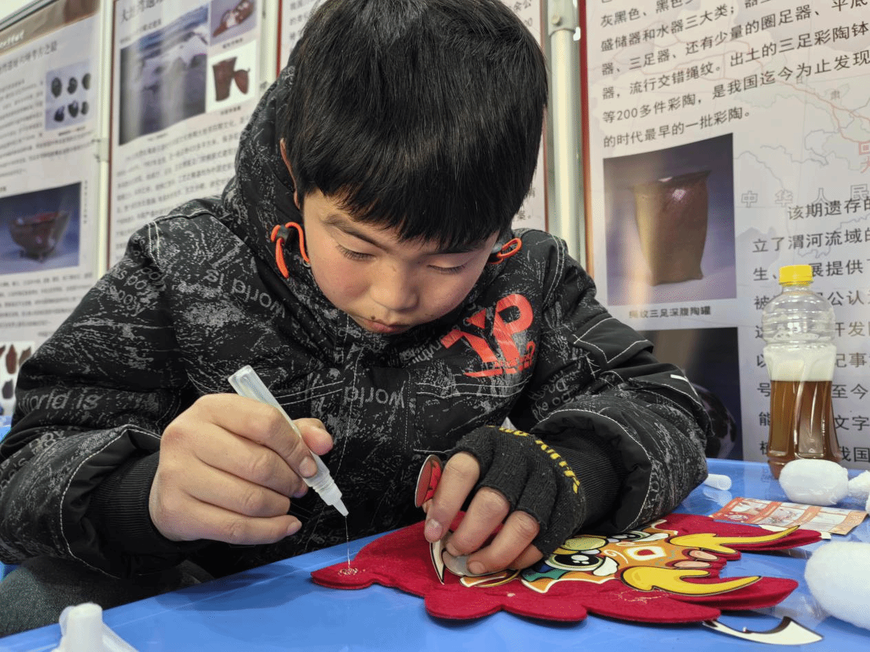 为了传承中国优秀的传统文化,让青少年了解龙的象征意义, 让孩子们在传统文化中感受到浓浓年味,2月12日大地湾博物馆开展了春节系列活动之“画龙点睛迎新年 巧手童心制龙帽” 主题社教活动,活动吸引了多名孩子参与,共同感受传统手工艺的魅力,体验中华文化的博大精深。