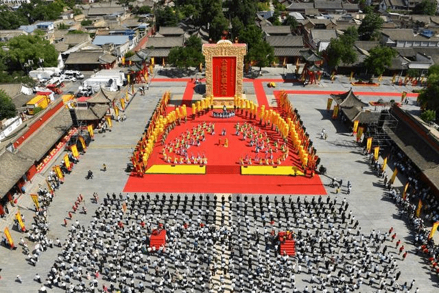 伏羲庙的院子里,参天古柏形似飞龙,华盖苍翠如洗,不时有人穿过印着龙形图案的旌旗,在先天殿前躬身敬拜。早在春秋时期,渭水流域就有祭祀伏羲的传统。每年6月,当地举行的公祭伏羲大典已成为全球华人寻根祭祖的盛会和传承弘扬中华传统文化的重要平台,至今已成功举办30多届。