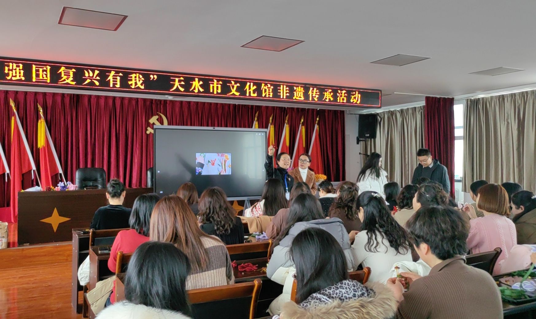 为了积极践行“强国复兴有我”主题性宣传教育活动,天水市文化馆组织非物质文化遗产代表性传承人、文化志愿者于3月5日、3月7日分别走进秦州区人力资源和社会保障局、秦州区皂郊镇社区开展“强国复兴有我”天水市文化馆非遗传承活动和庆祝“三八”妇女节非遗展示活动。