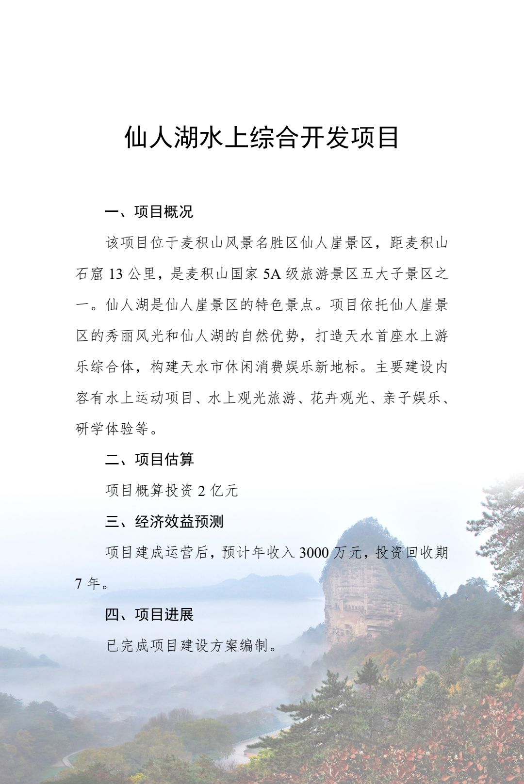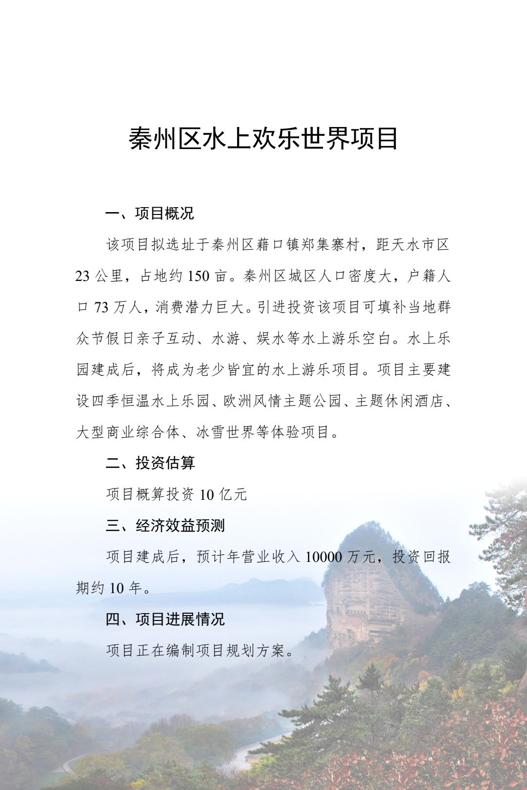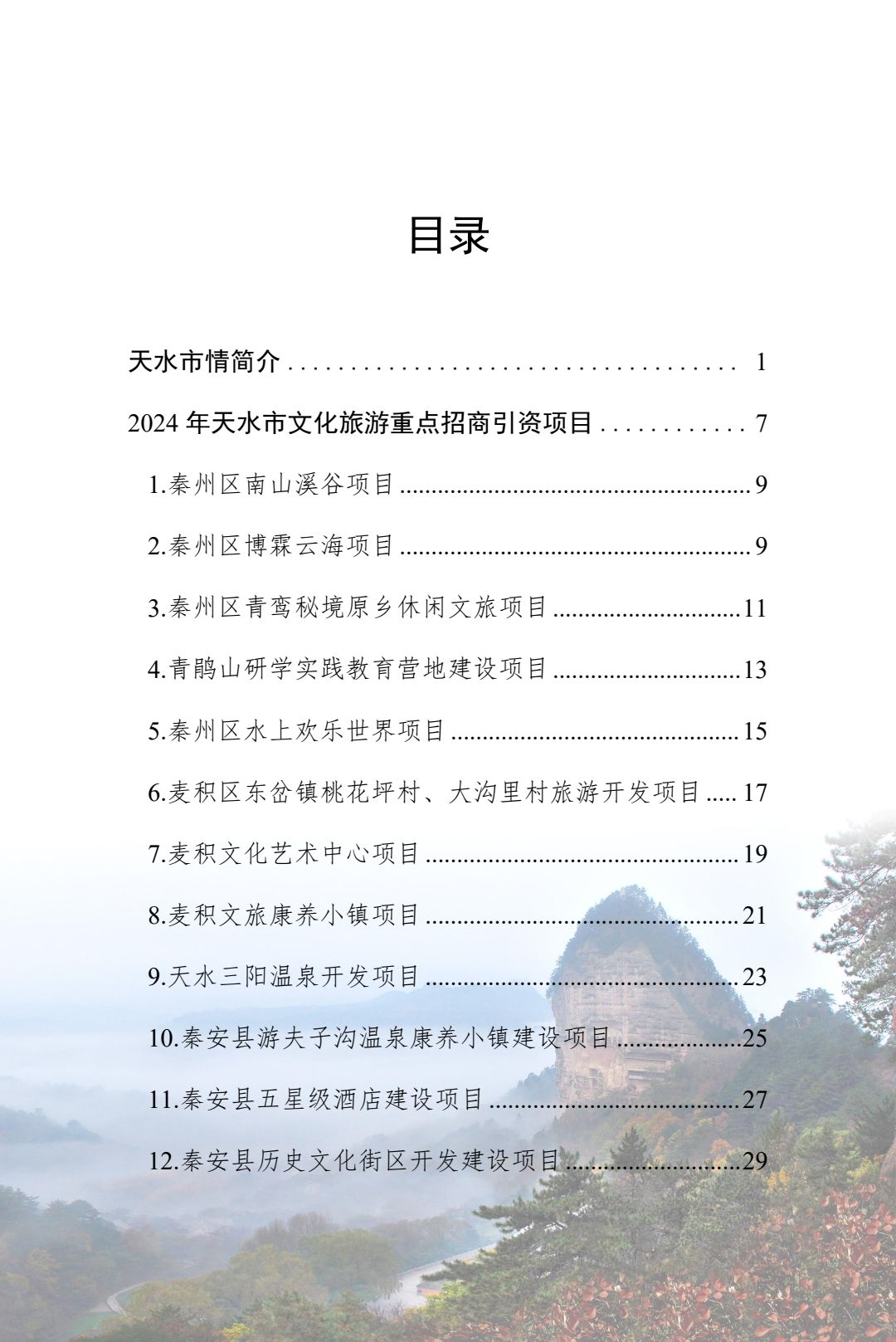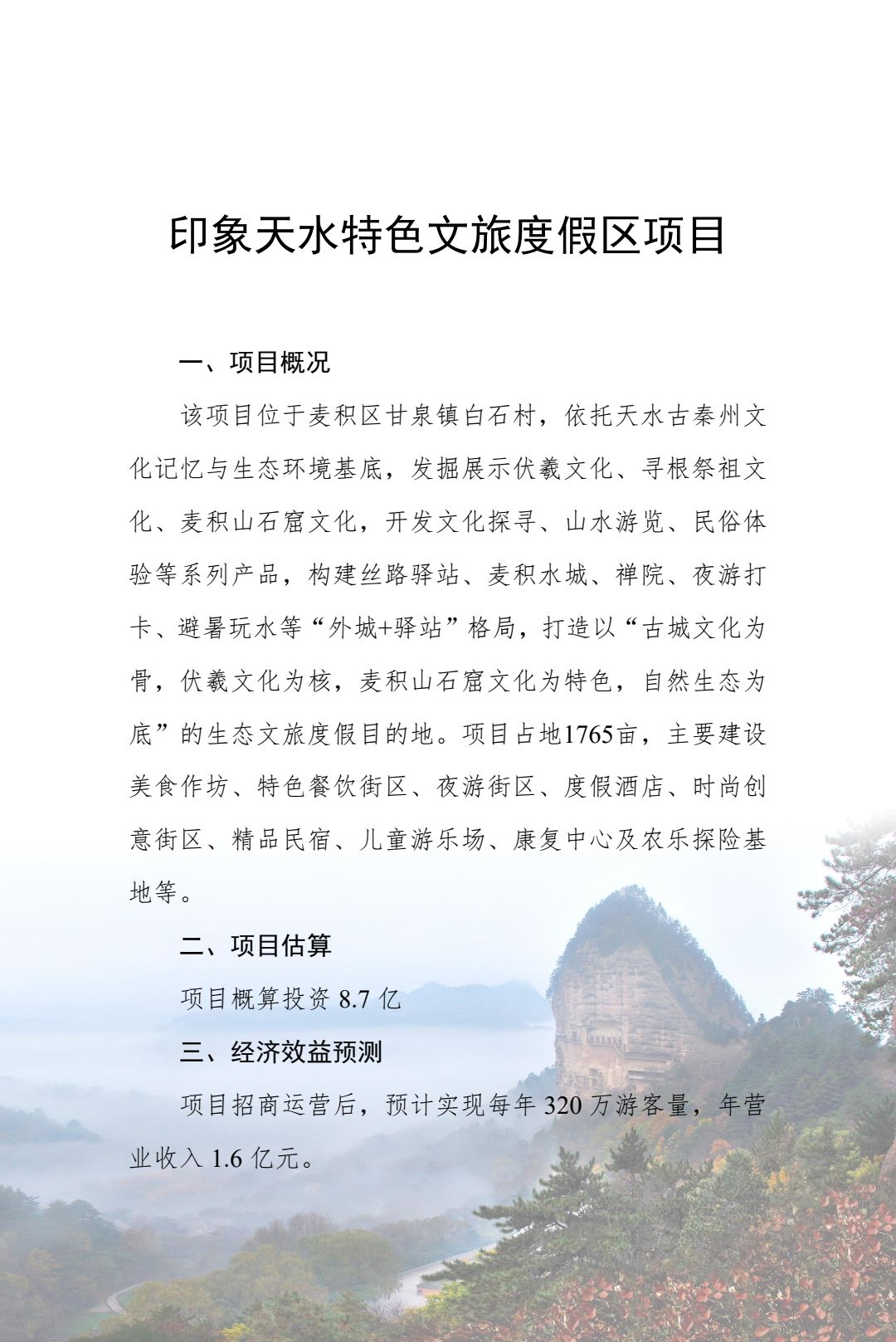 附件:2024年天水市文化旅游重点招商引资项目