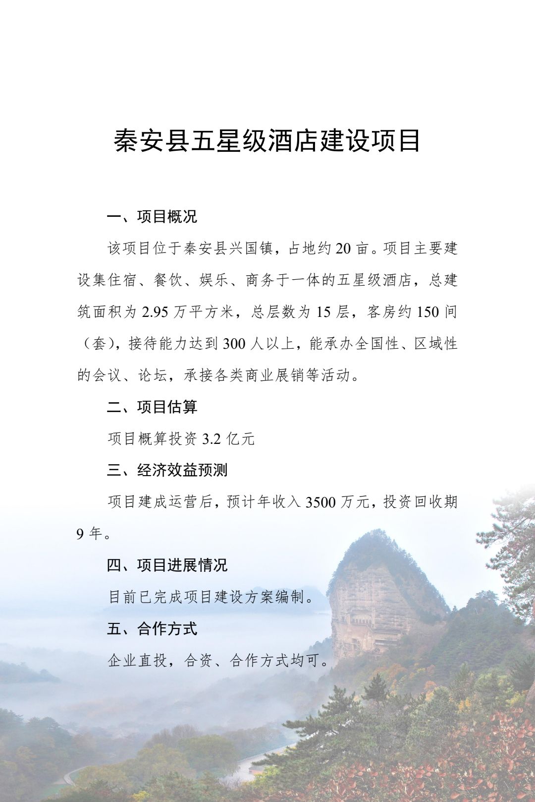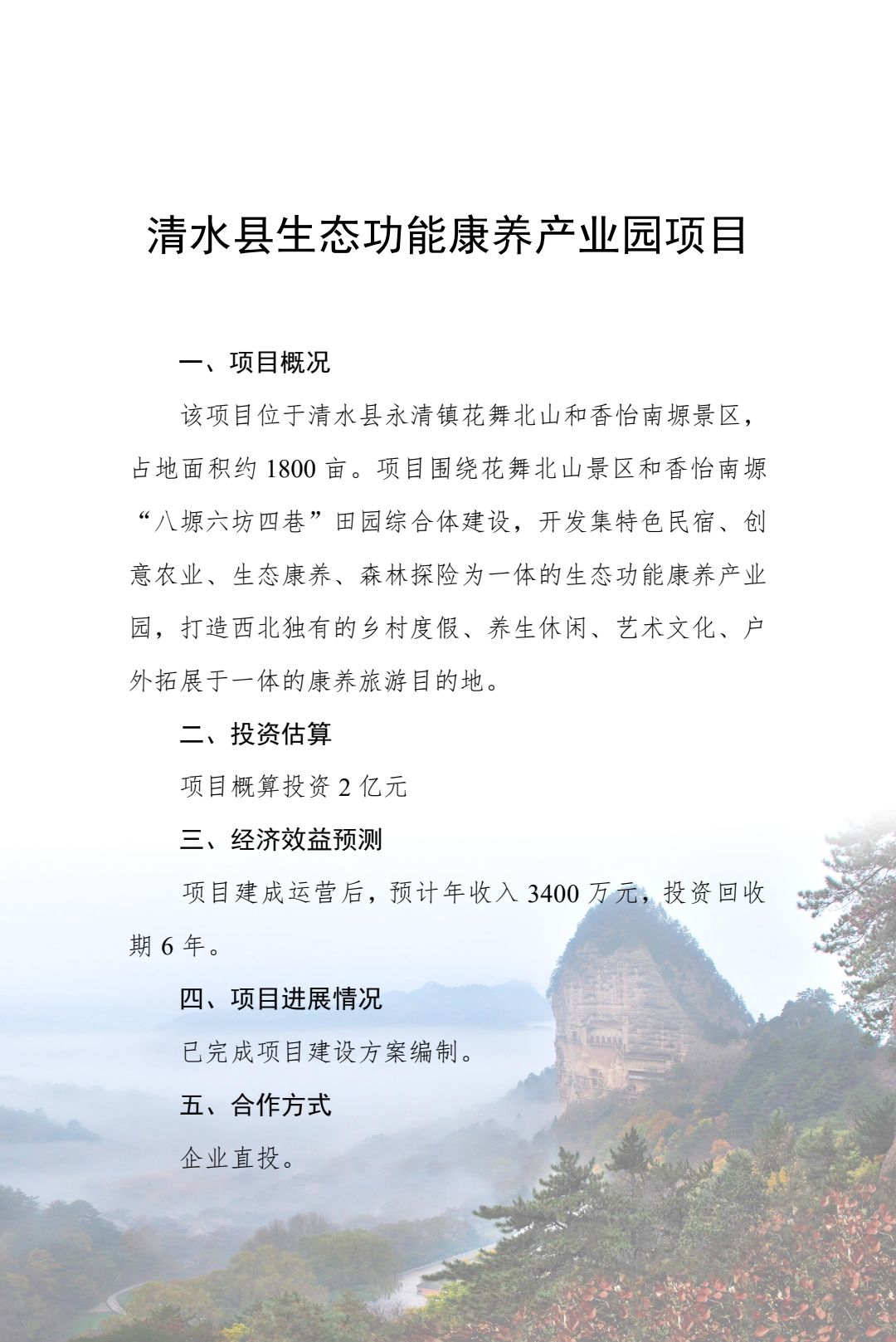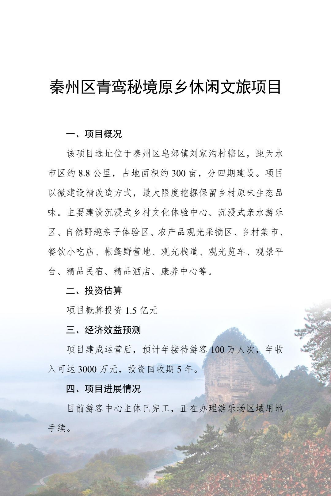 附件:2024年天水市文化旅游重点招商引资项目