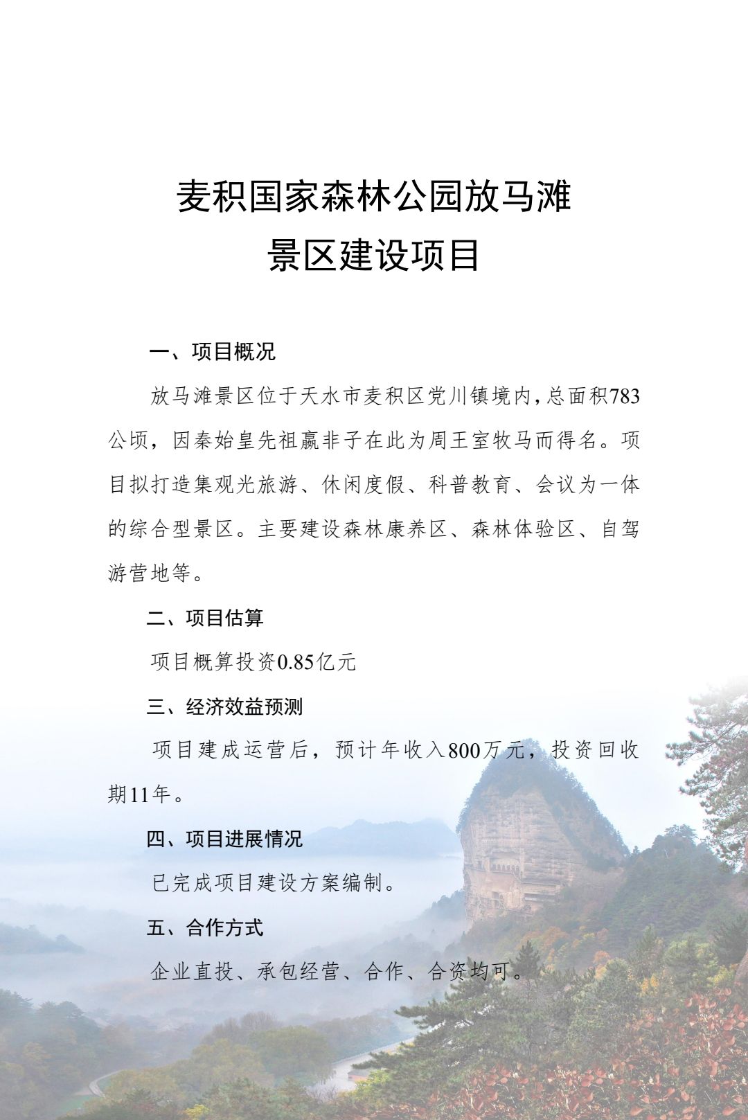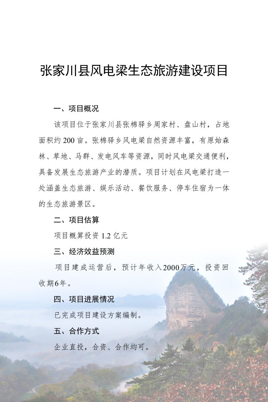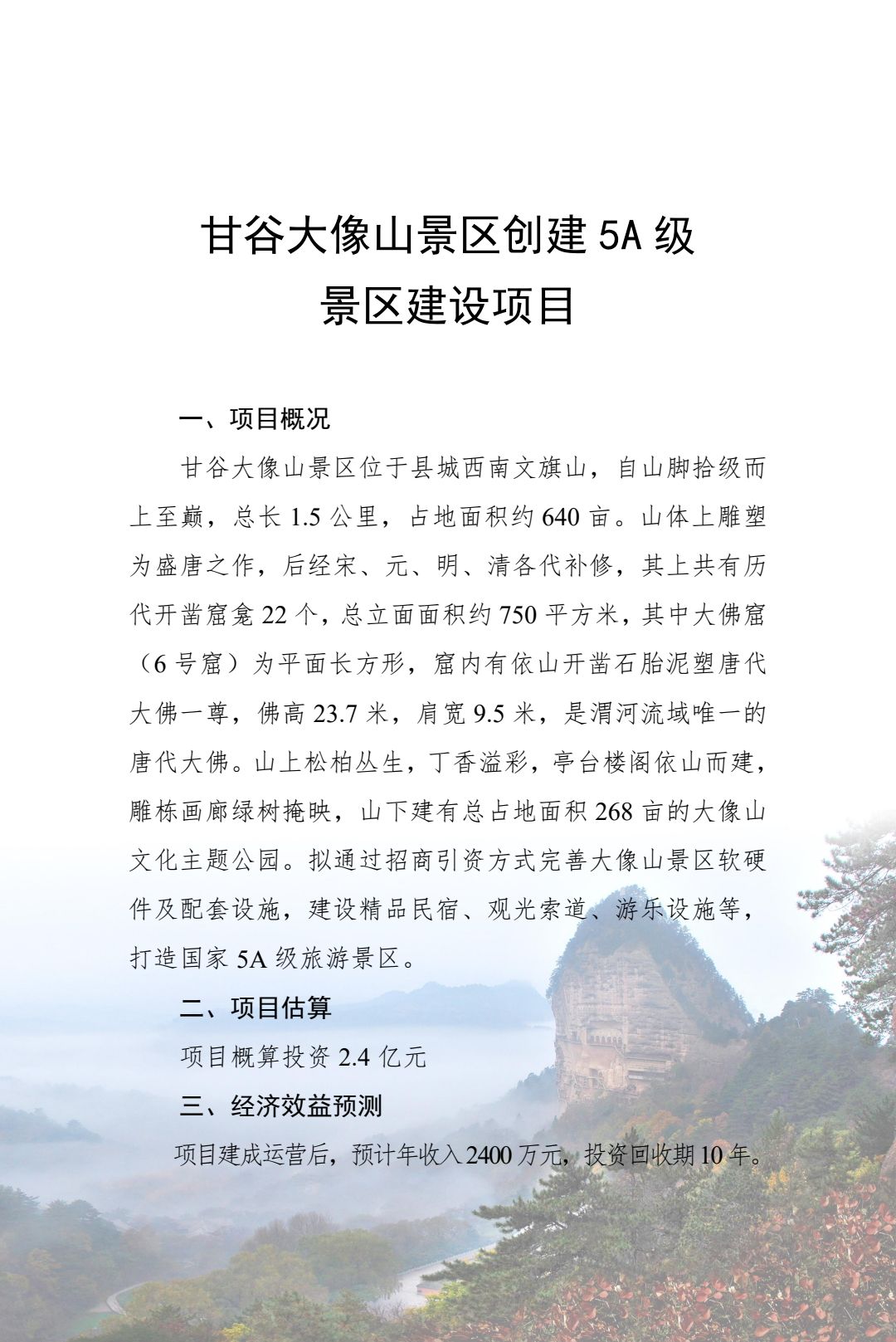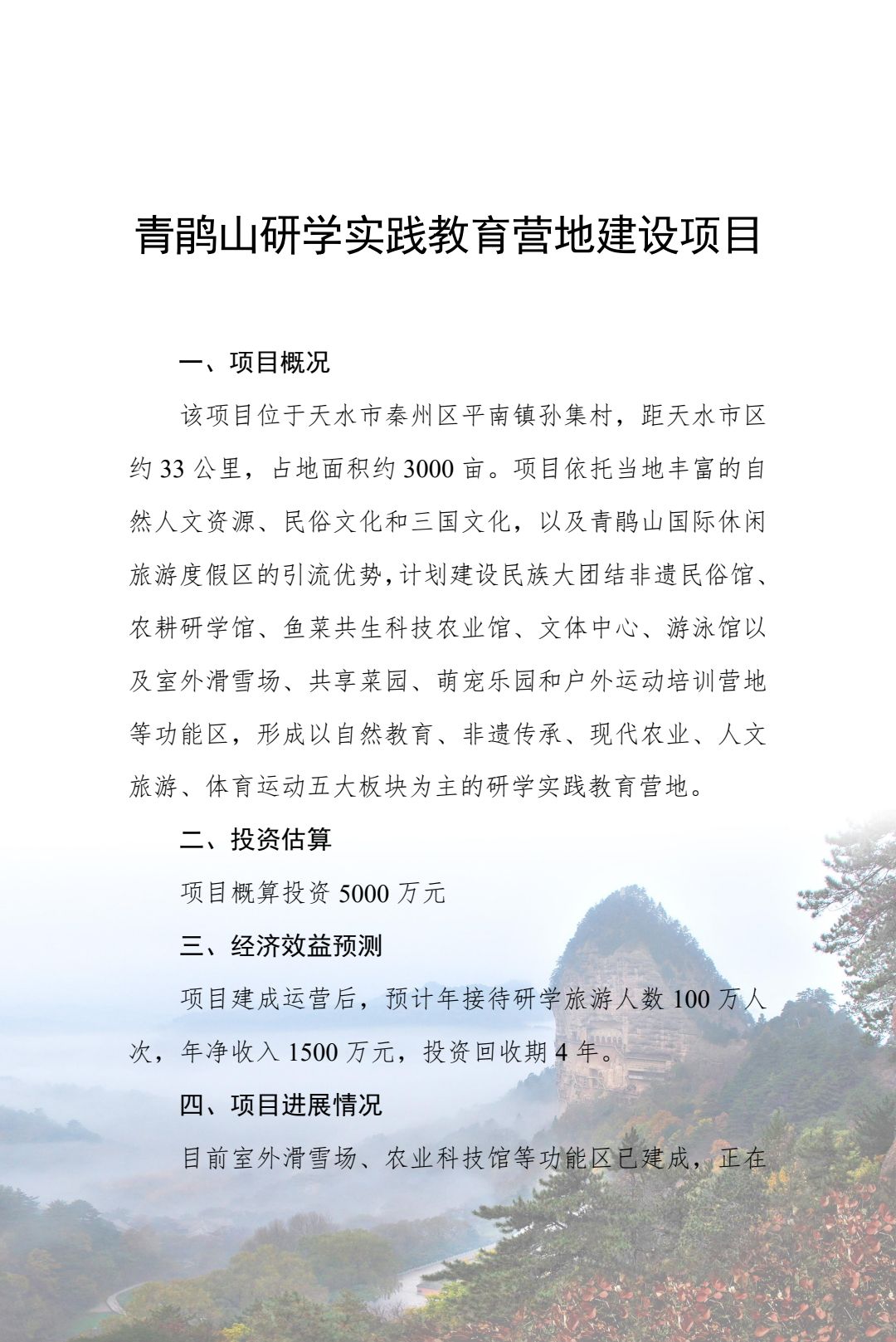 附件:2024年天水市文化旅游重点招商引资项目