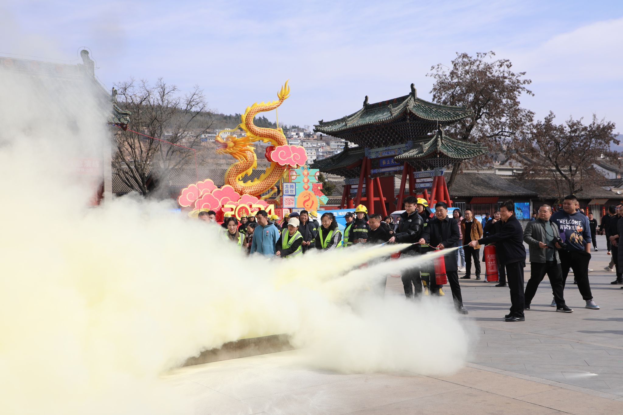 参加培训演练活动的有天水市博物馆各馆长、各部室负责人及工作人员;天水市消防救援支队、秦州区消防救援大队相关领导及工作人员;秦州区环卫中心相关领导及工作人员;聚宝盆社区主任及工作人员;上元会人员;北京房地集团有限公司(天水伏羲庙部分古建筑保护修缮工程施工方)等相关工作人员。