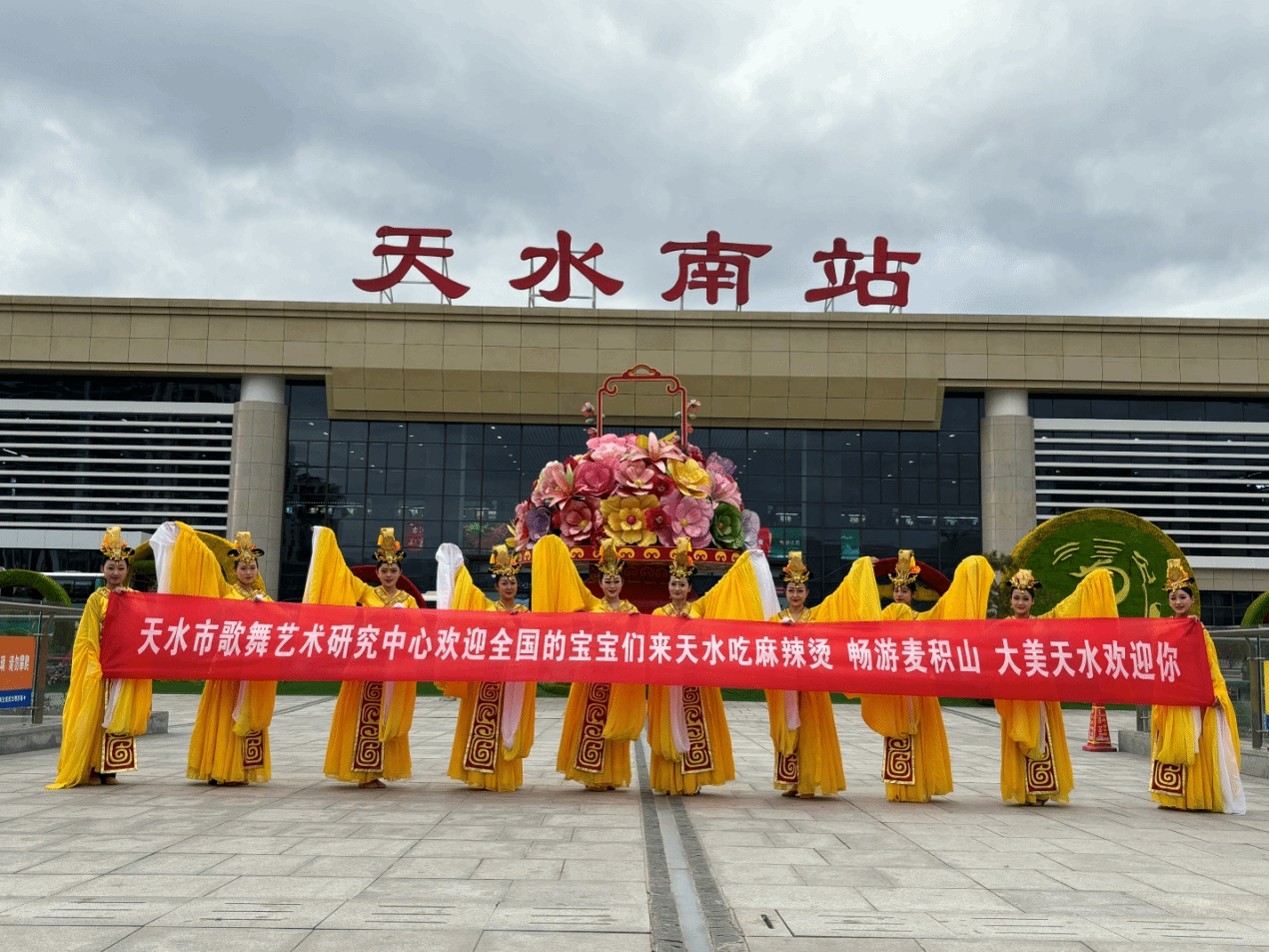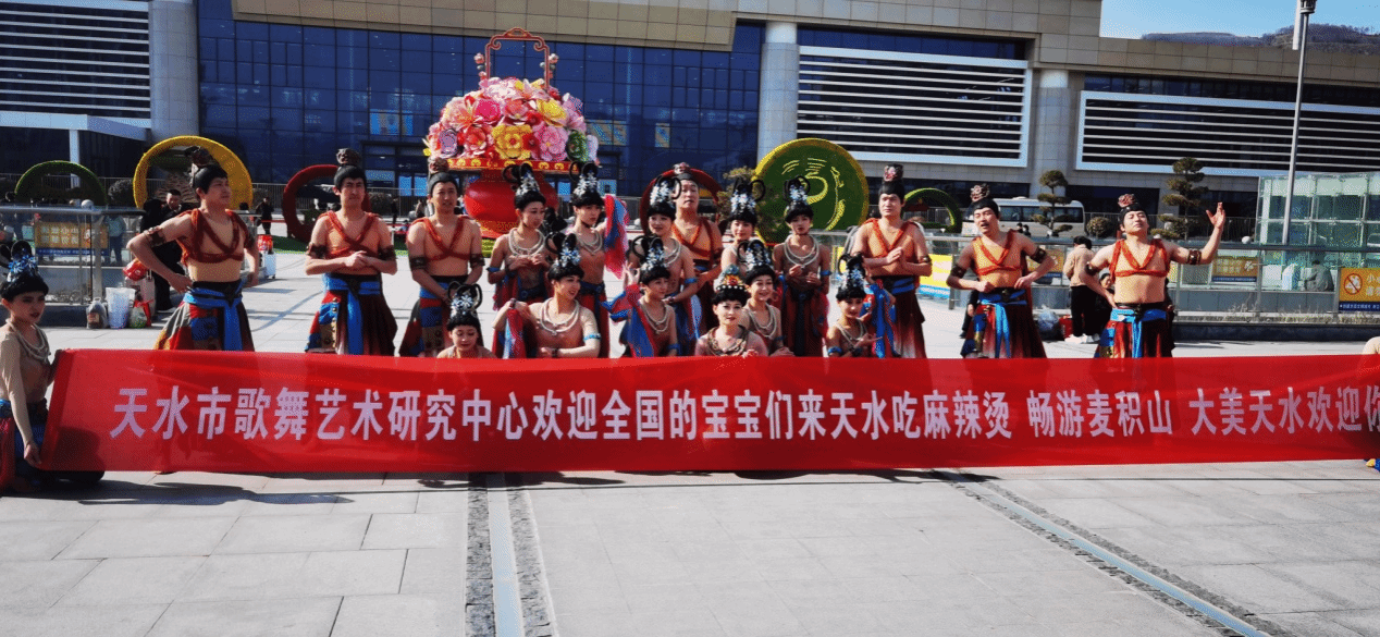 3月14日、15日,我们派出舞蹈演员赴天水麦积山景区、天水南站进行宣传演出。演出现场,来自五湖四海的游客阵阵掌声,热情高涨,纷纷叫好。