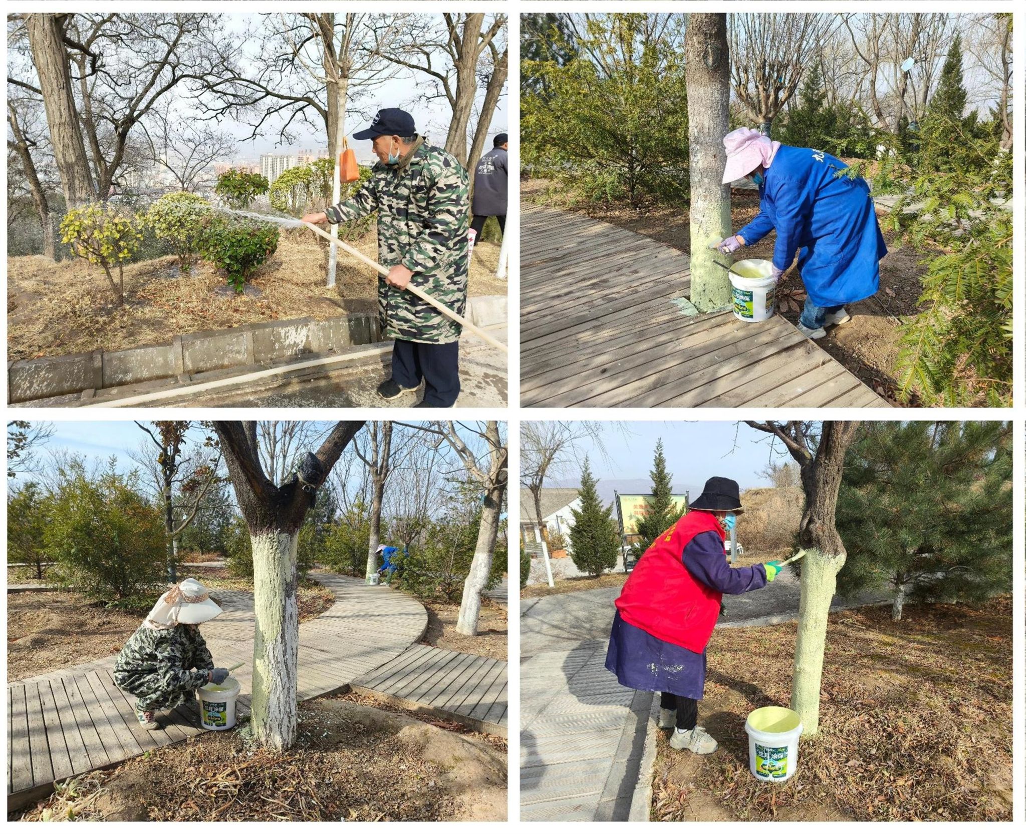 秦安县凤山景区对景区内树木进行修剪、涂白,以最佳状态迎接游客的到来。