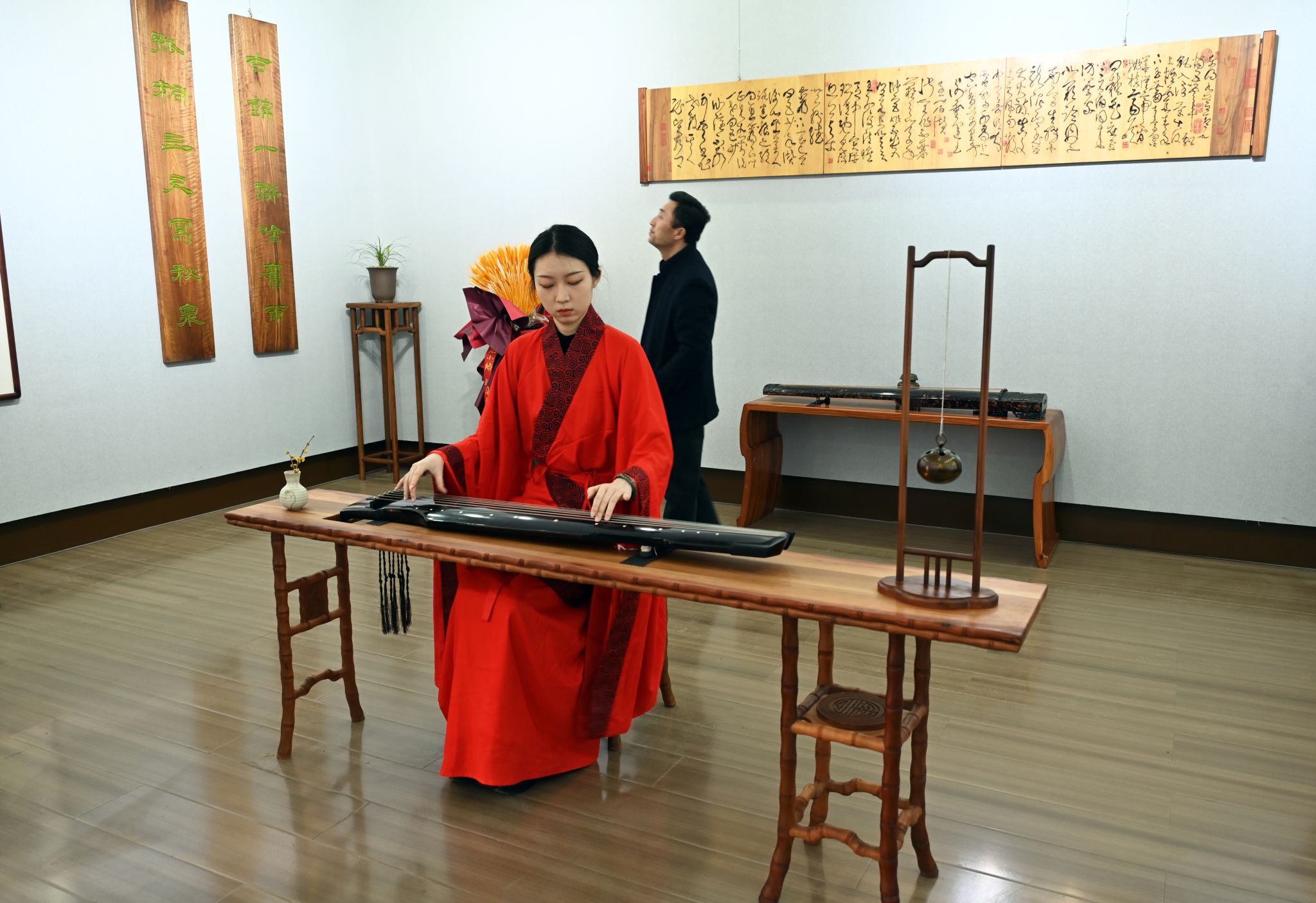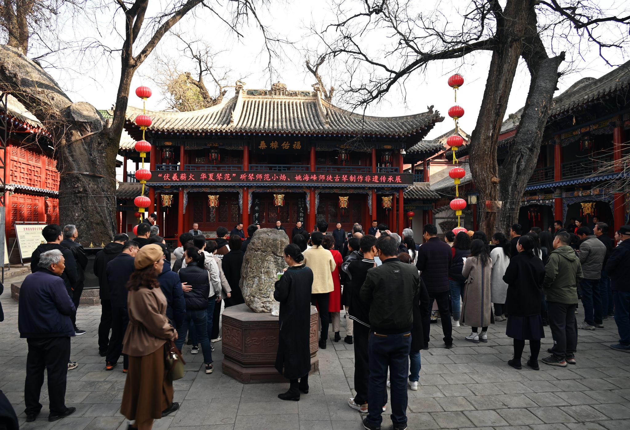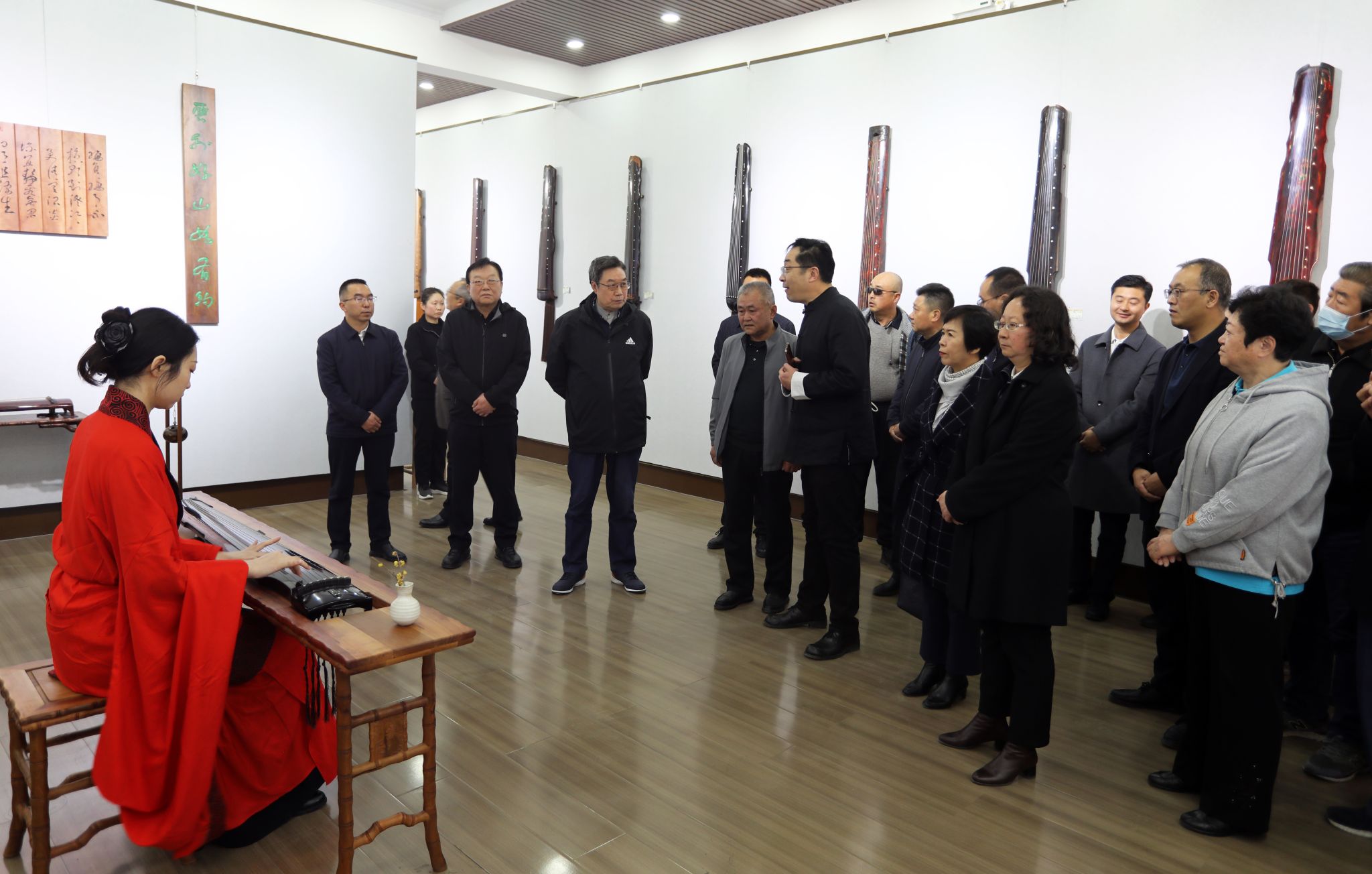 省政协原副主席张津梁、市委原常委、一级巡视员雷鸣,市委常委、宣传部长王文东,市委常委、副市长张宇晶,市人大常委会副主任沈建玲、市政协副主席罗增芳,省书协副主席、市文联一级调研员杨清汀、天水古琴制作技艺传承人范小炀、姚海峰等领导嘉宾、陕甘两省古琴专家、学者,古琴爱好者以及广大游客等参加了开幕式。