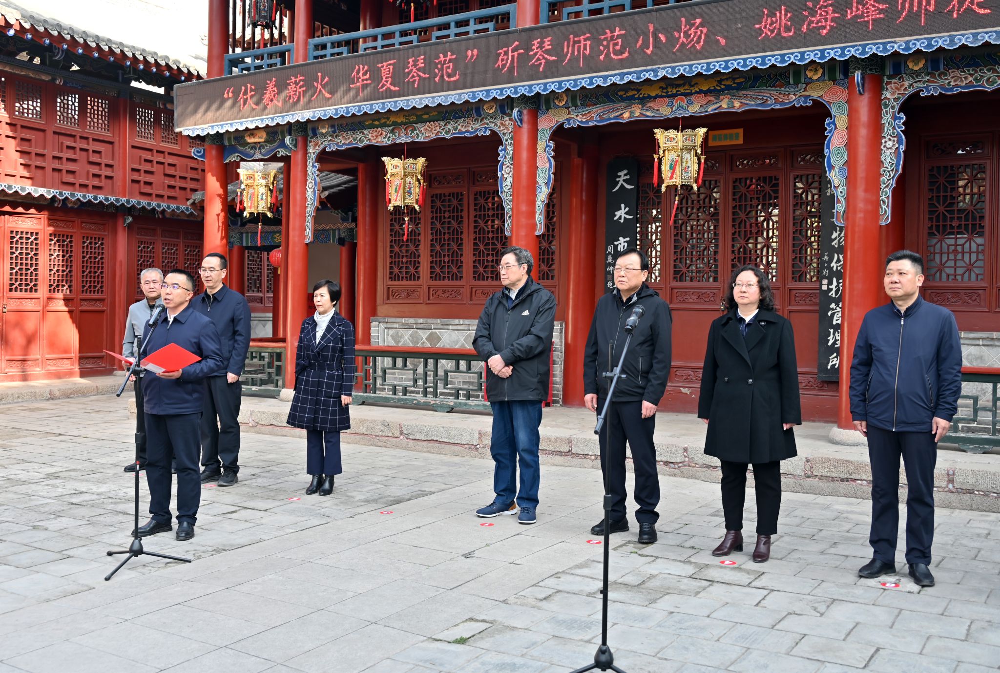 市委常委、宣传部长王文东宣布开幕,市委常委、副市长张宇晶讲话,市文化和旅游局党组书记、局长牛新虎主持了开幕仪式。天水古琴制作技艺传承人范小炀先生致答谢词。