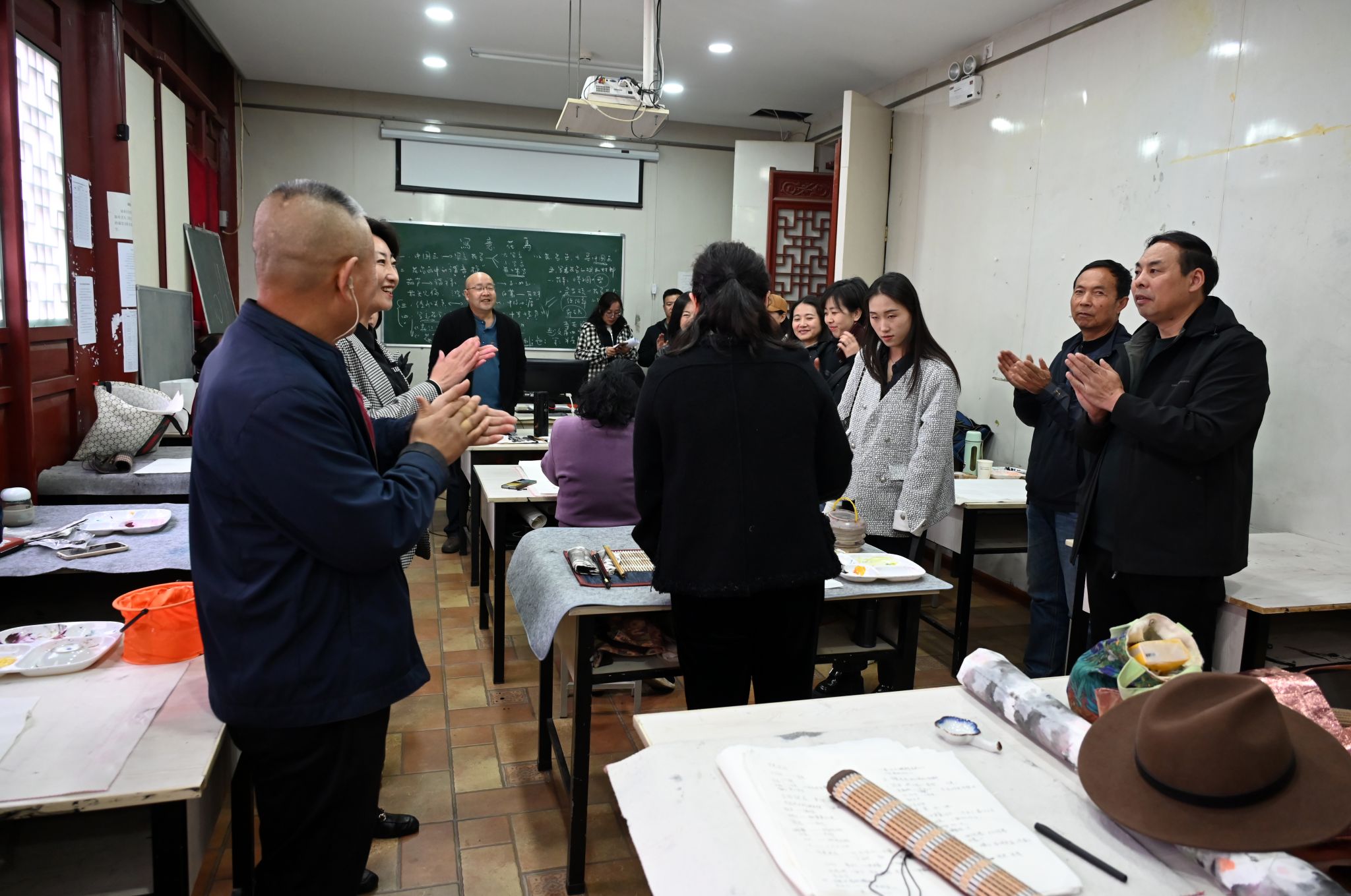 展览期间,白银市文化馆和天水市文化馆还开展了交流座谈,分别就全民艺术普及、培训辅导、非遗工作等进行了交流,相互学习借鉴,共同提高,加深两地文化工作者之间的情感交流,进一步提升两馆公共文化服务能力,促进公共文化服务体系的转型升级,共同携手为“一带一路”建设做出文化人应有的努力和贡献。
