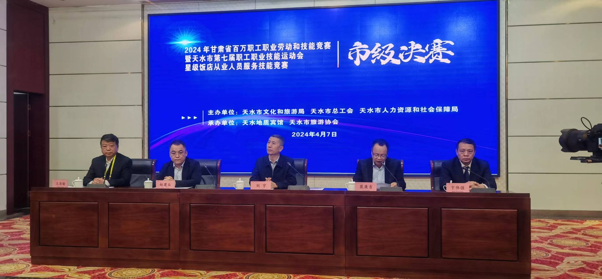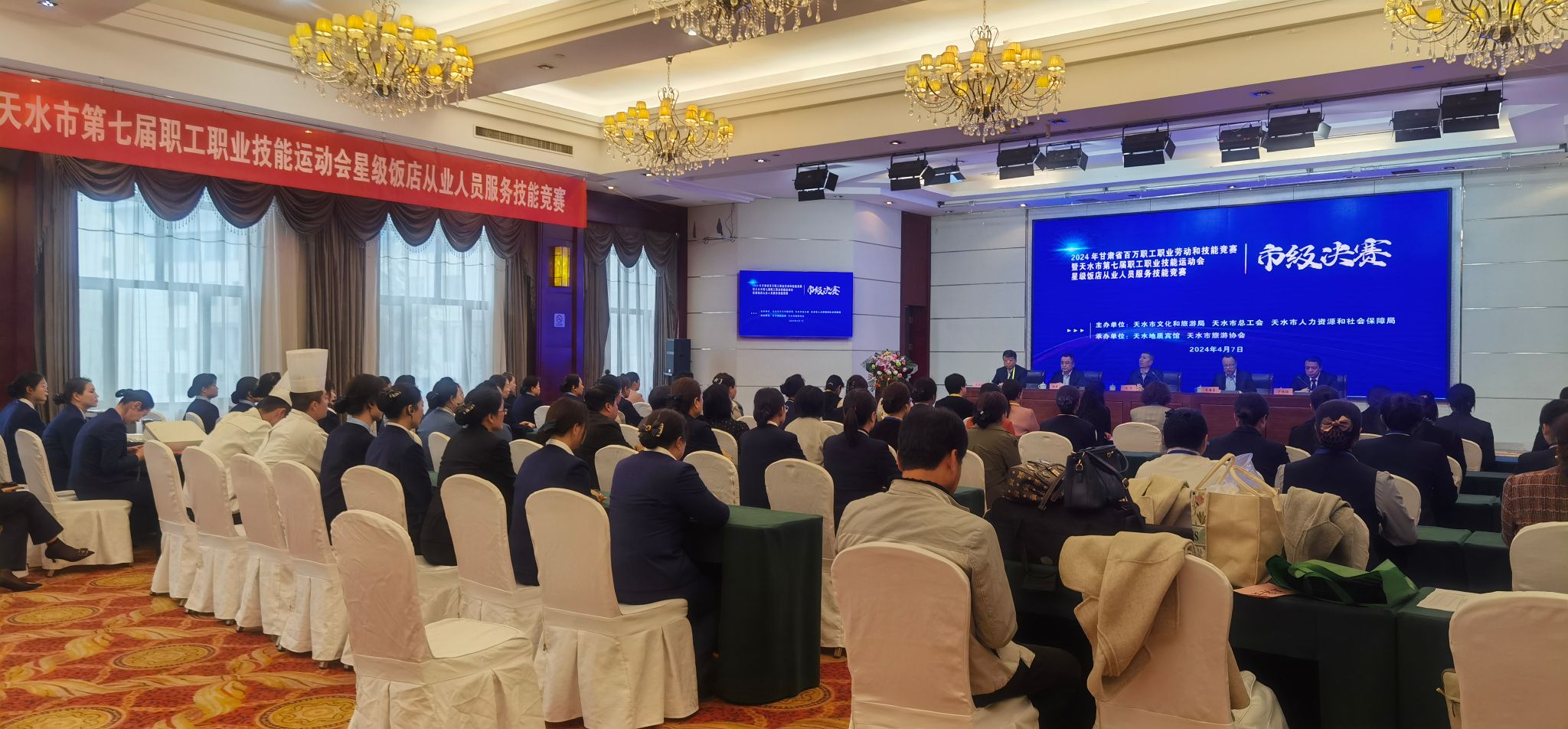 4月7日,由市文旅局、市总工会和市人社局联合主办的“2024年甘肃省百万职工劳动和技能竞赛暨天水市第七届职工职业技能运动会星级饭店从业人员服务技能竞赛”在天水地质宾馆开幕。参赛选手、大赛评委、工作人员、观摩嘉宾共计70多人参加了开幕式。市人社局党组成员、副局长刘宇,市文旅局党组成员、副局长裴康吉,市总工会党组成员、经审委员会主任赵建业、天水地质宾馆总经理卞伟强出席开幕式。