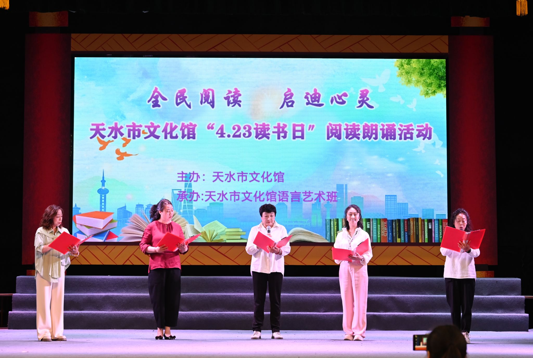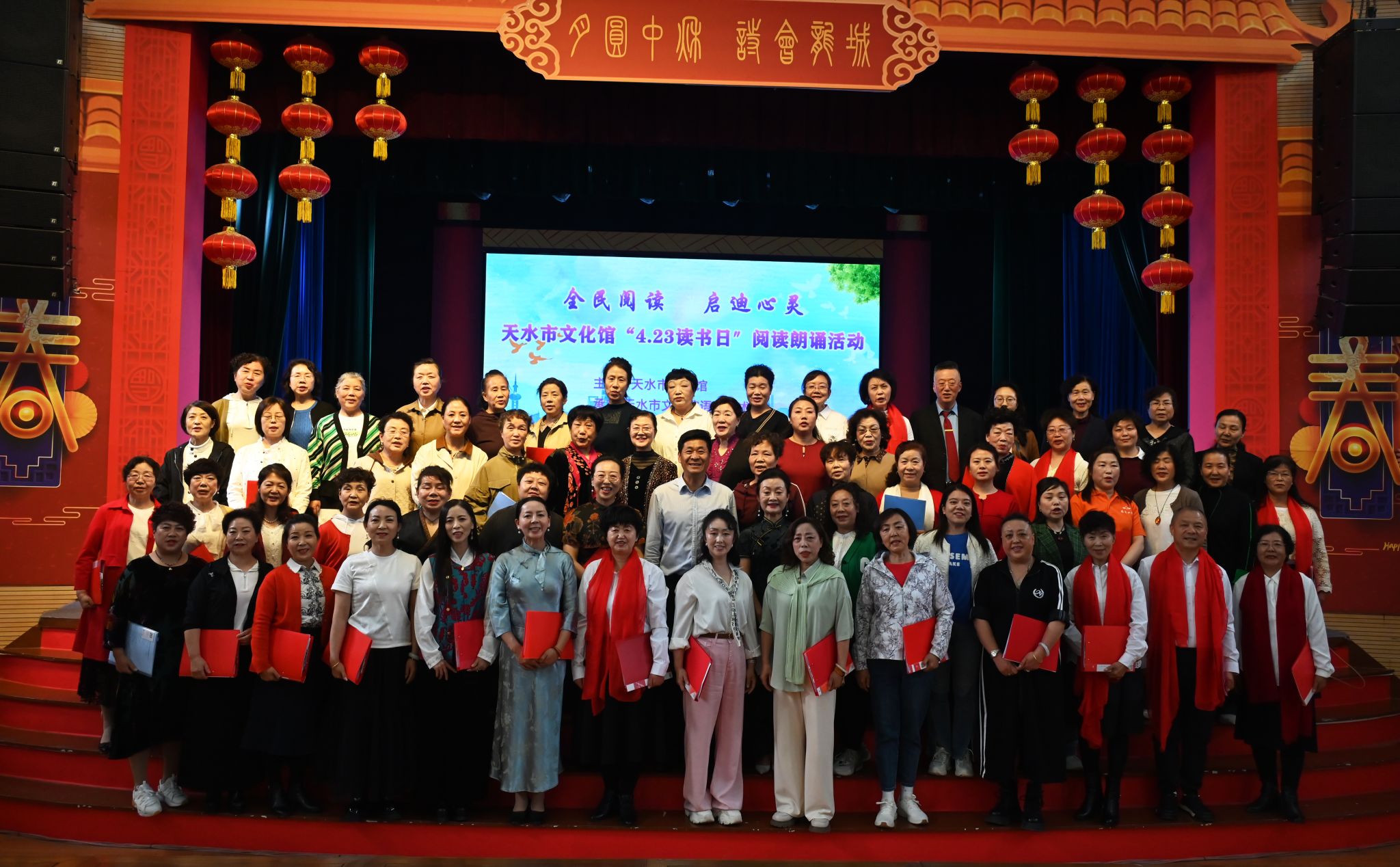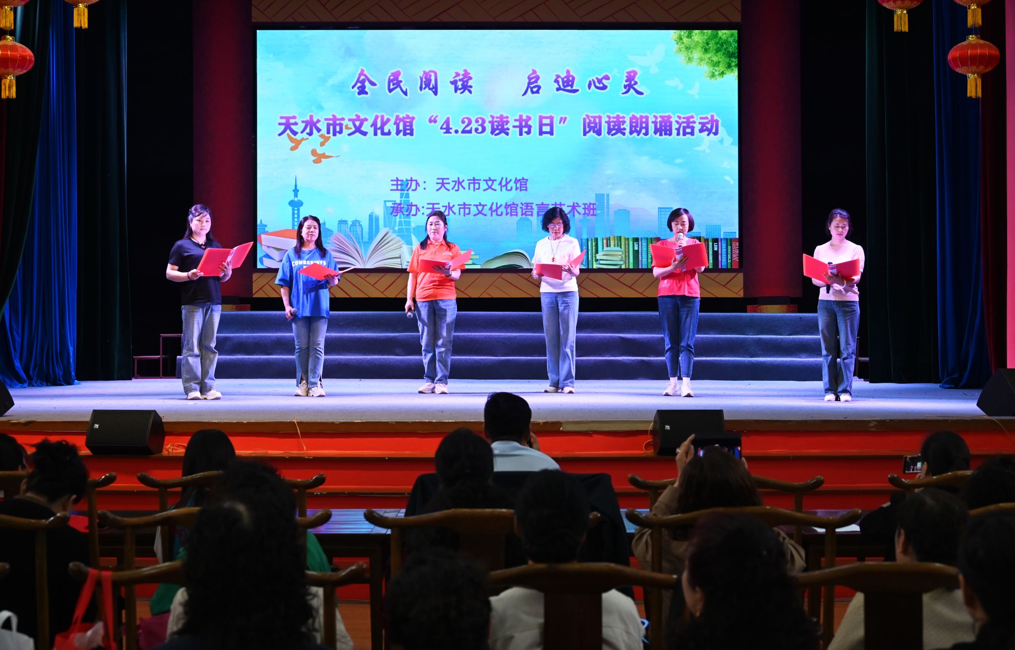 4月19日下午,在第29个世界读书日来临之际,为进一步培养全民 “爱读书、善读书、读好书”的阅读习惯,形成浓郁的学习氛围,丰富群众文化生活,构建书香社会,培养广大市民对阅读和朗诵艺术的感悟能力,天水市文化馆在文艺厅举办“全民阅读 启迪心灵”--“4·23读书日”阅读朗诵分享会,天水市文化馆青年干部职工和语言艺术公益班学员100多人参加了活动。