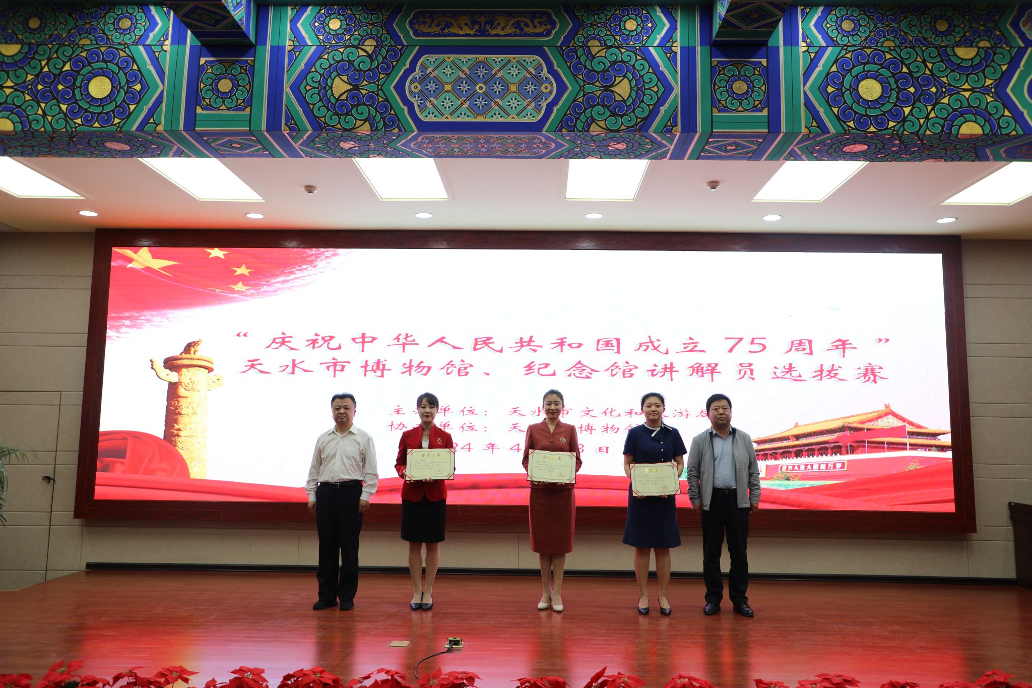 为全面展现博物馆纪念馆讲解员的文化素养和精神风貌,选拔推荐一批优秀讲解员和优秀讲解作品,更加生动地讲好中国故事、文物故事、家乡故事。2024年4月28日上午,由天水市文化和旅游局主办、天水市博物馆协办的天水市庆祝中华人民共和国成立75周年博物馆纪念馆讲解员选拔赛在天水市博物馆举办。全市博物馆纪念馆相关负责人等60余人进行了观摩学习。