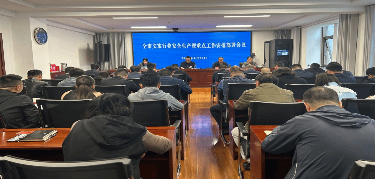 为确保今年“五一”假期全市文化旅游市场安全平稳有序以及重点工作的稳步推进,4月29日,市文旅局组织召开全市文旅行业安全生产暨重点工作安排部署会议。会议传达学习了省、市近期安全生产相关会议和文件精神,对节前文旅市场安全生产检查情况进行了通报,并对重点工作进行了安排部署。市、县(区)文旅局主要领导、局属各单位和机关各科室负责人、重点文旅经营单位负责人共计约50人参加了会议。
